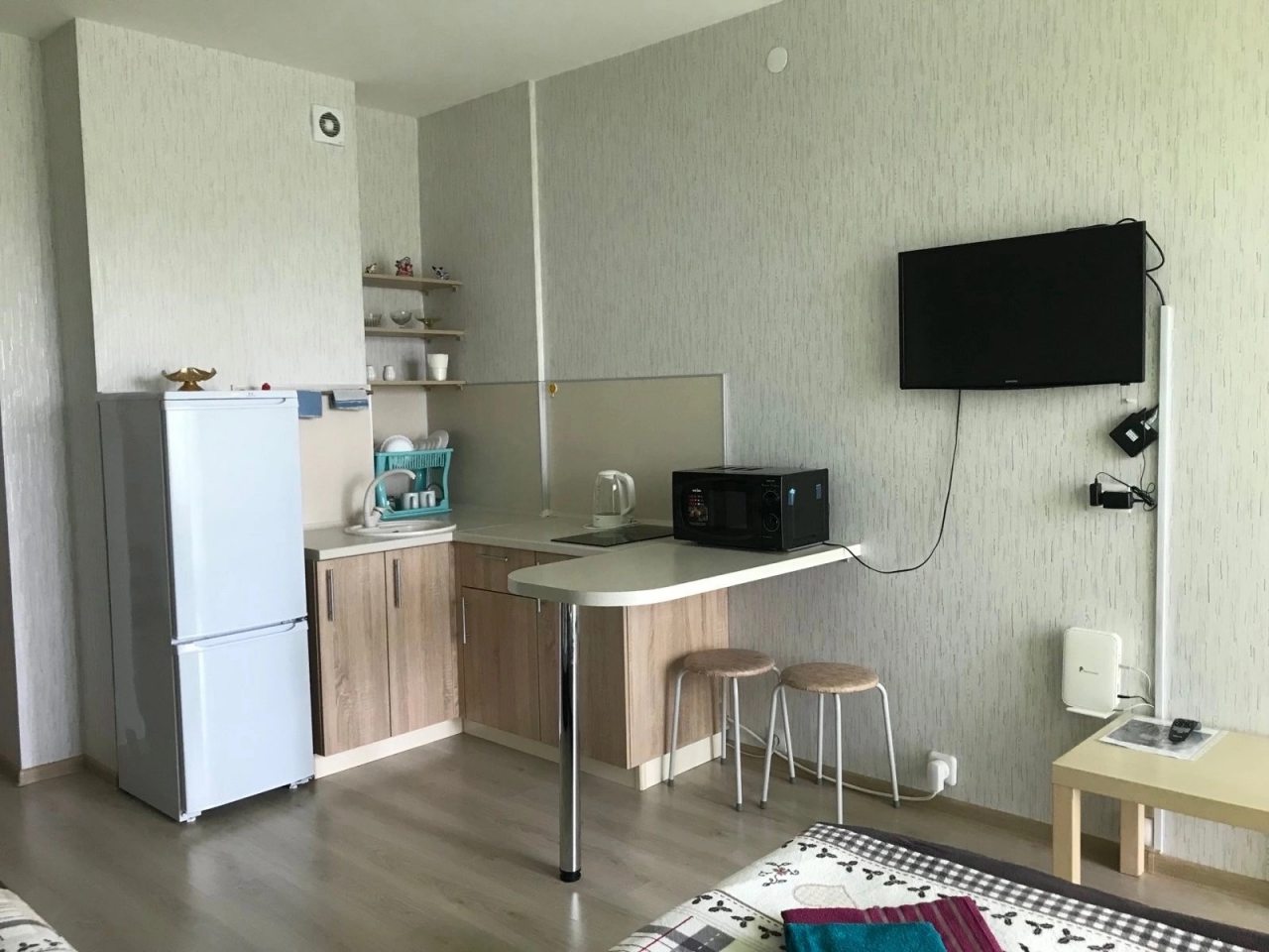 Квартира на 25 этаже, очень красивый вид на город. В номере все бытовые удобства есть, холодильник, микроволновка, машина стиральная, посуда на кухне. Приезжали сюда два раза, нам нравится. В следующей командировке опять здесь забронирую номер. Спасибо.
