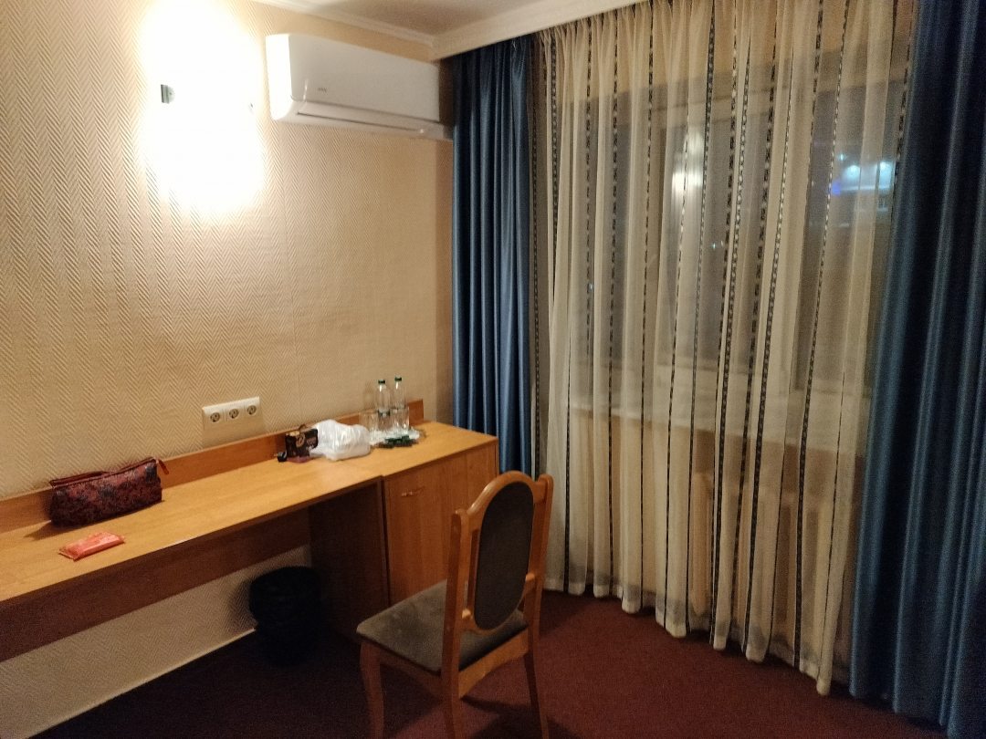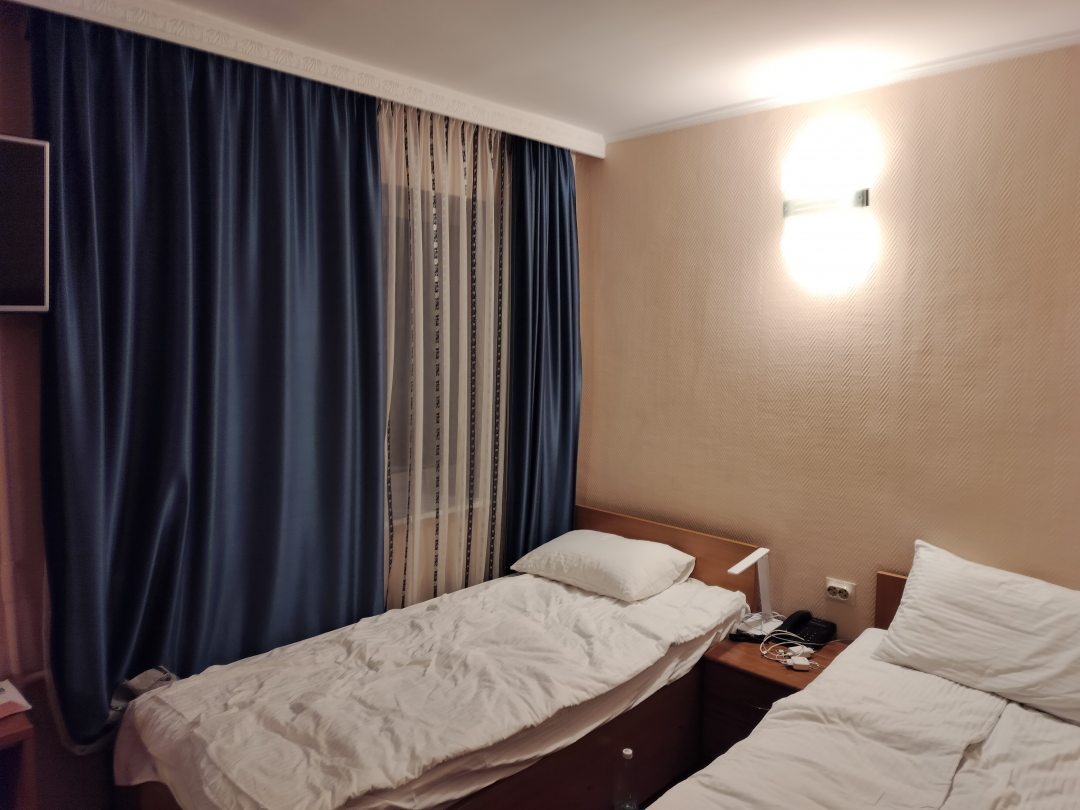 Нашли отель быстро. Удобное расположение напротив ЦУМа. Были очень уставшие, но очень быстро оформили. Спасибо за это. Всё, что было заявлено для 2-х местного номера с отдельными кроватями в номере было, даже фен и тапочки.