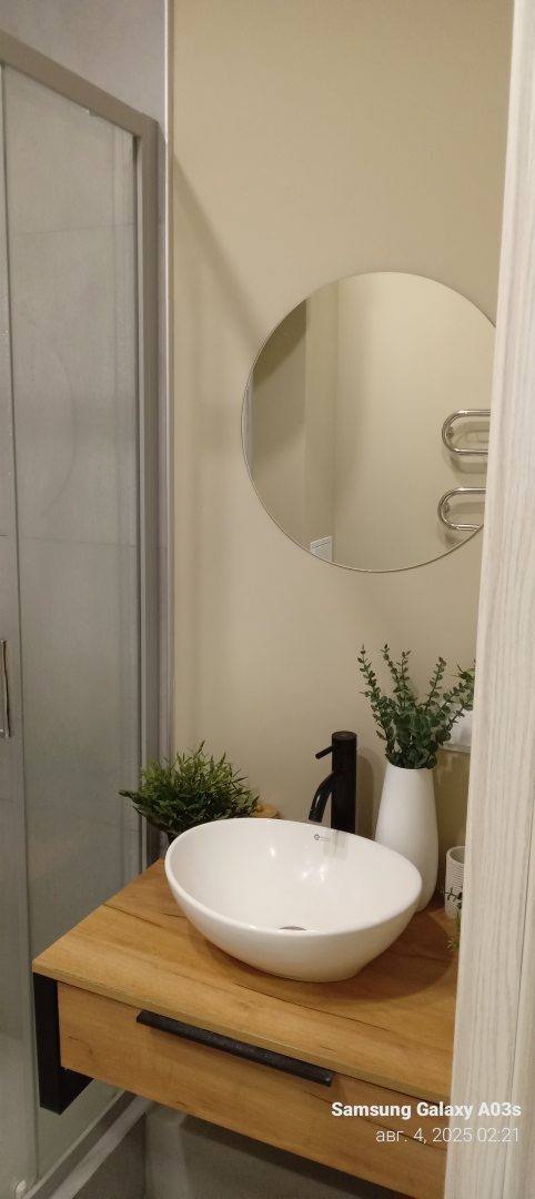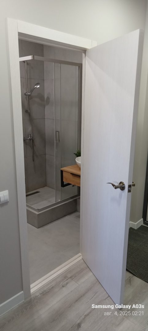 Из недостатков: расположение на отшибе города, без машины было бы трудно добираться, новый дом много где еще идет ремонт. Квартира на 1 этаже, дверь в ванную и туалет не закрывалась.