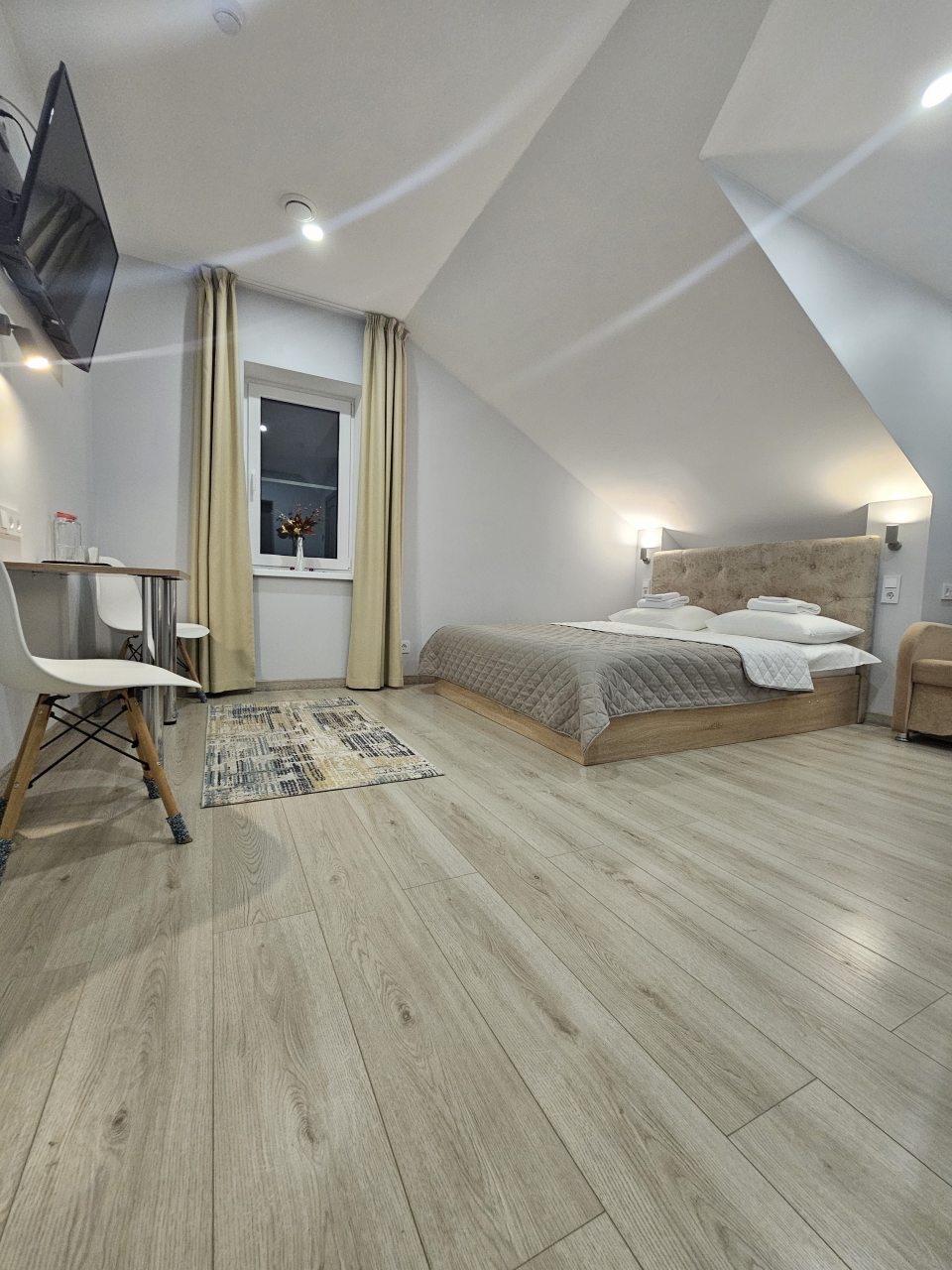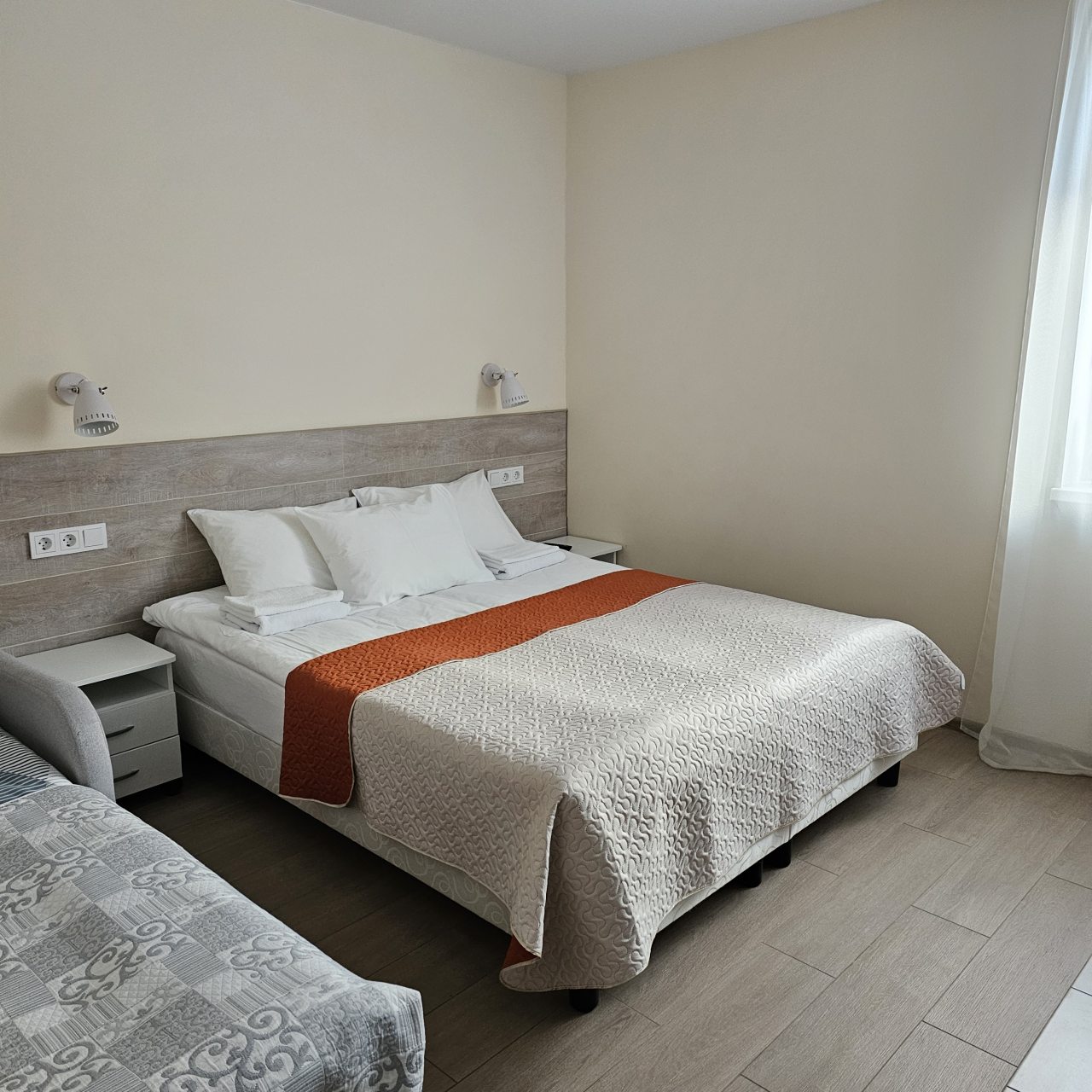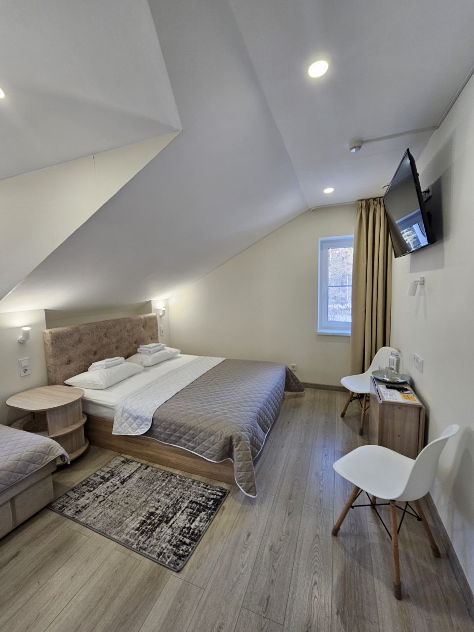 Уютные номера, все продумано для спокойного отдыха. Расположение удобное, рядом остановка и магазины. Внутри чисто, постель свежая, сантехника в порядке. Персонал внимательный и вежливый. Тихо, можно хорошо выспаться. Есть возможность оставить машину во дворе.