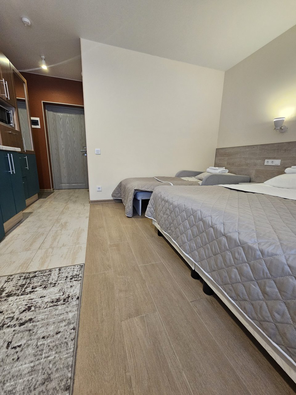 Отель совсем небольшой, но достаточно комфортный. Есть небольшой кухонный уголок, позволяющий разогревать еду. Санузел внутри номера присутствует. Оформляли бронь заблаговременно, заселились вовремя. Персонал довольно любезный, хорошо провели здесь время. Рада порекомендовать это место.