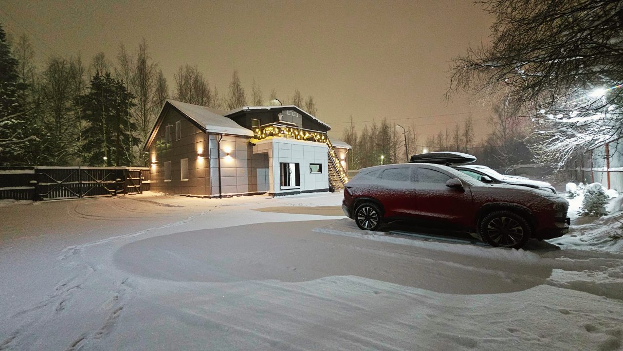 Отличная большая парковка. Номер порадовал размером и наполнением – всё, как заявлено в описании. Были холодильник, чайник, даже микроволновка, что супер, немного посуды, в ванной есть фен. Есть и общая кухня, которой вполне комфортно пользоваться. Там есть холодильник с морозильником, кстати.