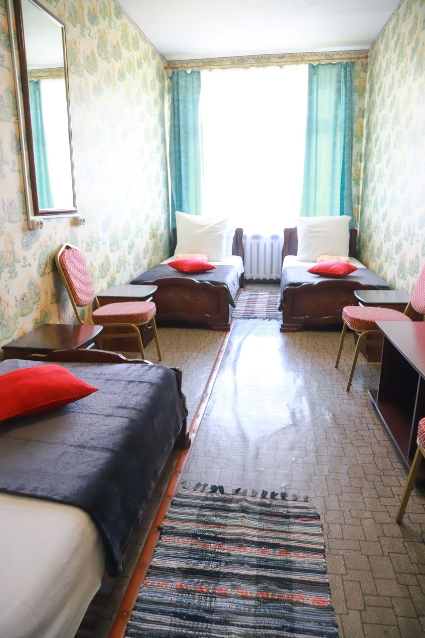Интересное здание! Мне показалось, что раньше здесь был детский сад. Забыла спросить. Поэтому находится в тихом месте. А навесы для прогулок переделаны в зоны отдыха гостей. Внутри комнаты, общие места, столовая, в которой можно поесть за дополнительную плату. В целом все понравилось, за зданием следят, убирают и ремонтируют.
