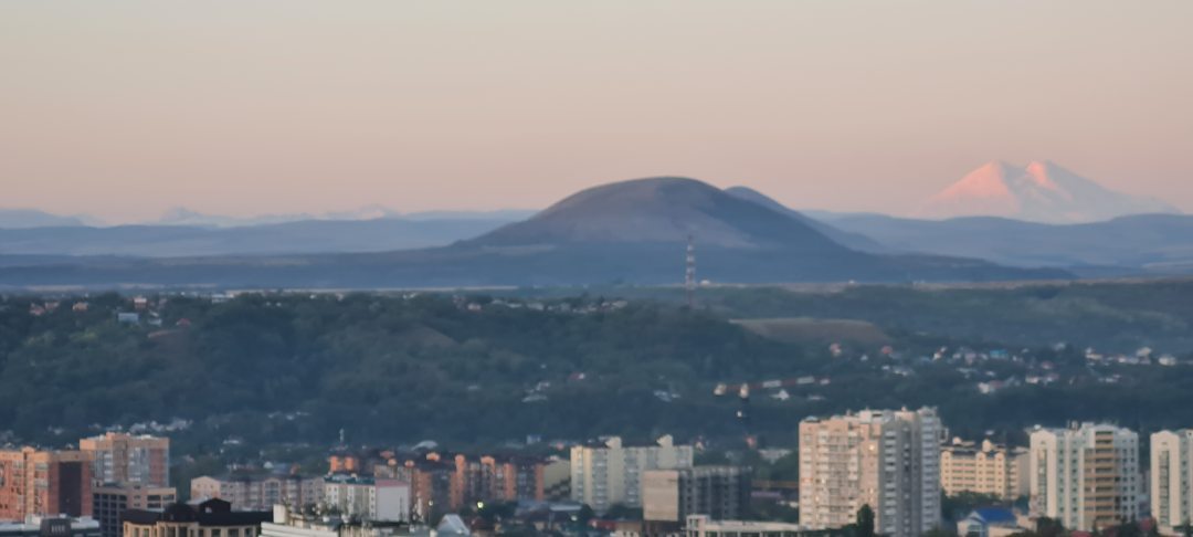Удобное расположение, прекрасный вид с 8 жилого этажа (прибавьте к нему ещё три уровня нежилых) из окон в западную сторону - на сам Пятигорск, Бештау и Юцу, роскошные закаты. Иногда на горизонте и Эльбрус выплывал. Восточная сторона смотрит на склон Машука.