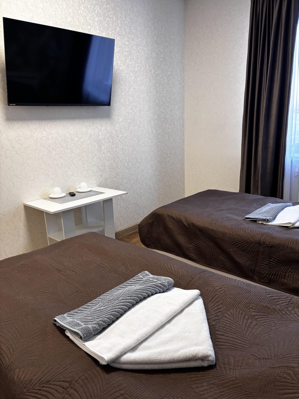 Номер аккуратный, постель не шуршит, спина не ноет. Стены без пятен, обстановка не раздражает. Санузел чистый, запахов нет. Удобно зайти, бросить вещи и сразу лечь. Ничто не гремит за стеной, соседи не слышны. За ночь высыпаюсь полноценно.