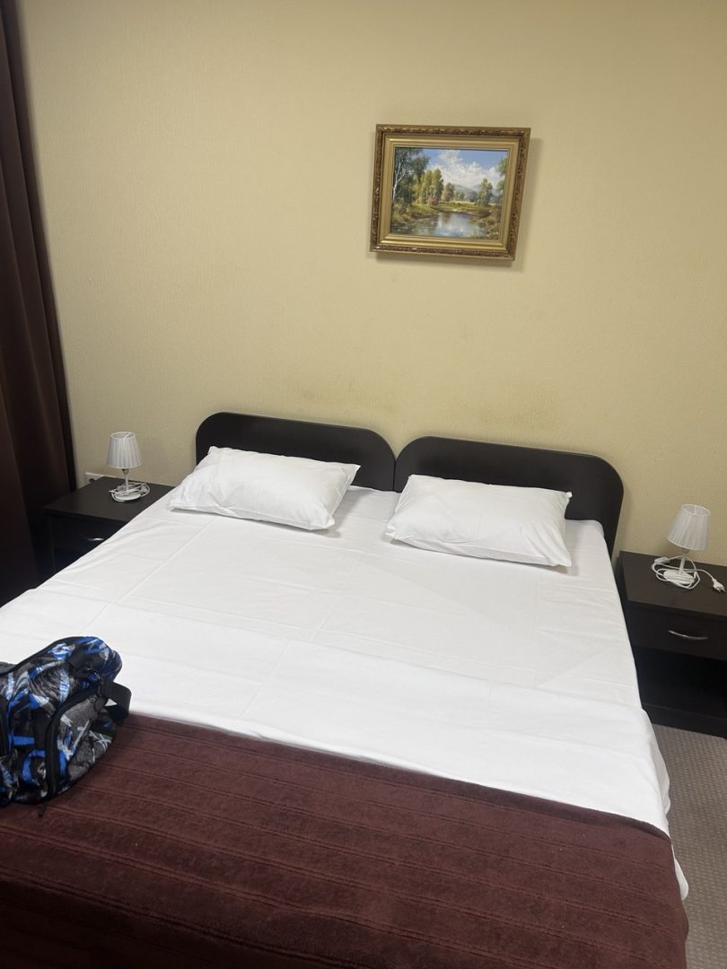Из недостатков: расположение от центра города не очень удобное, если нет автомобиля сложно добираться на автобусе, а в вечернее время так не дождаться автобуса, на такси цена вечером соответственно возрастает. Будет очень удобно для путешественников на автомобиле, отель расположен практически на выезде из города.