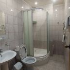 Из недостатков: первое - это душевая кабина со створками, которые держатся на честном слове. Тут как бы их не доломать нечаянно, ибо конструкция дюже хлипкая и жизнью потрепанная, причём я была в двух разных двухместных номерах стандартной категории, и в обоих примерно одинаковые проблемы именно с ванной комнатой. Вода течёт очень тонкой струйкой из душа, сантехнику давным давно пора заменить, так как искупаться по-человечески нереально под таким напором воды, да ещё и приходится ждать, пока пойдёт горячая вода, а идёт она ну очень медленно, причём как в душе, так и из крана. Пока стоишь в ожидании, становится холодно и с лёгкостью можно заболеть.