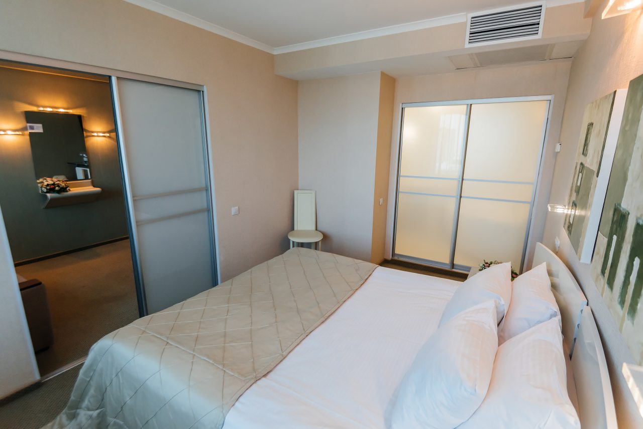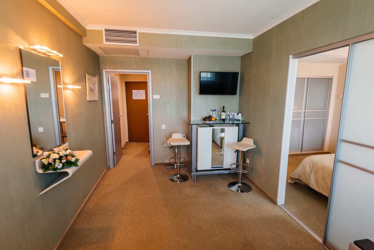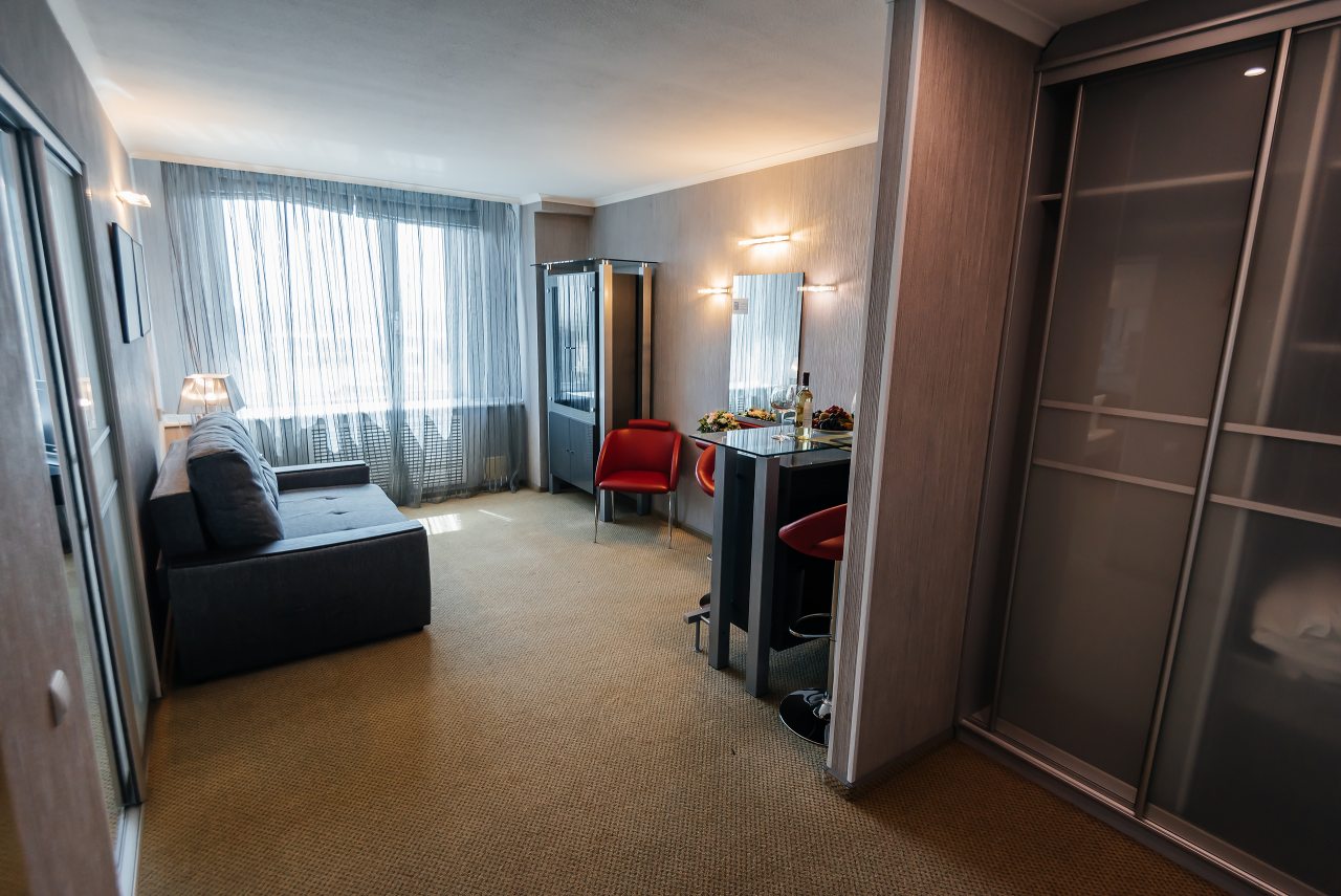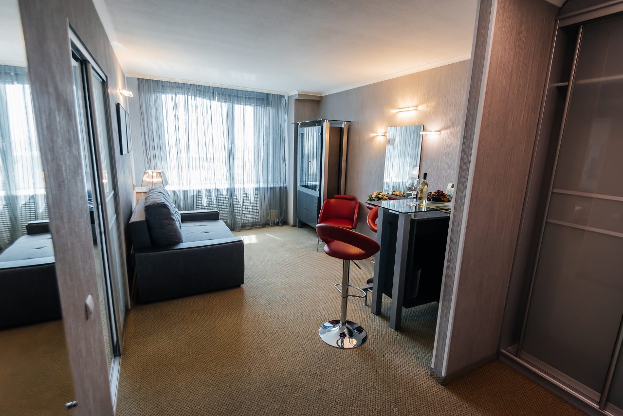 Отличный номер на 16 этаже, чистота, уют и спокойствие. Проектор, зеркальные стены и отсутствие лишних деталей зрительно увеличивают площадь даже стандартных номеров. Отличные завтраки и приветливый персонал, спа зона, тренажёрный зал - все, что нужно для комфортного проживания. Приятный бонус от отеля - шампанское для отличного настроения )))