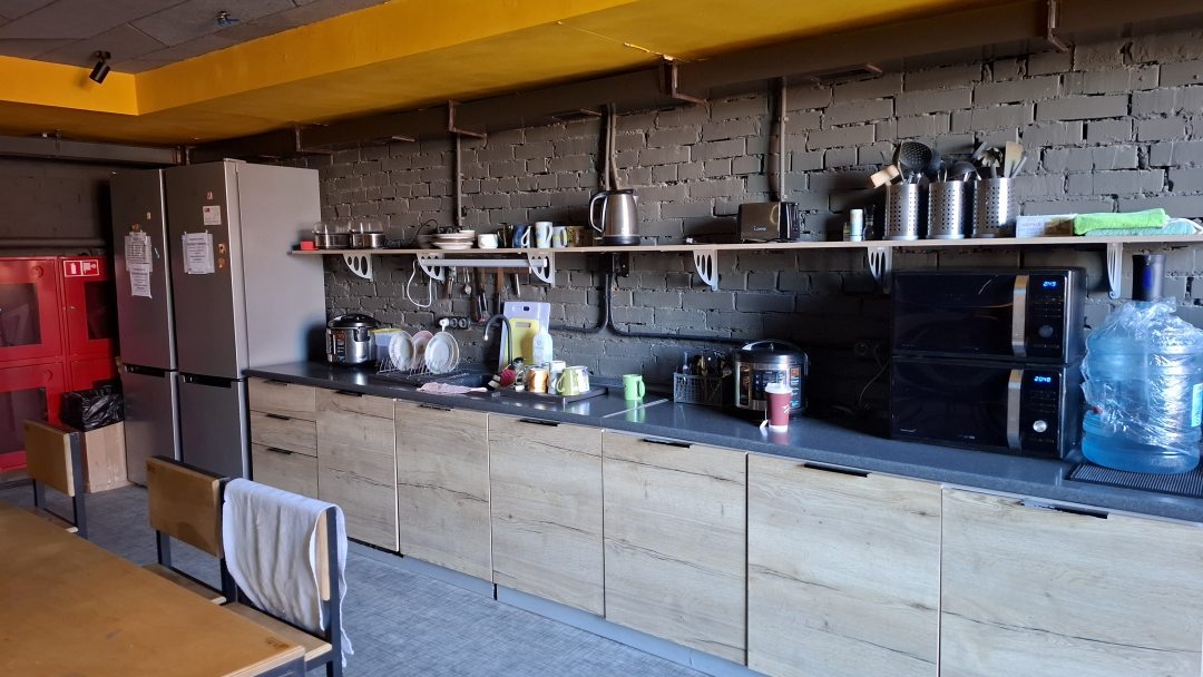 Очень стильный хостел, удобный номер с капсульным размещением. В номере кондиционер, у каждой кровати свет и розетки. Хорошая кухня с чайниками, мультиварками и посудой, 2мя холодильниками. Хороший душ и туалет, горячая и холодная вода, краны правда немного надо бы заменить, но напор воды отличный. Есть стиральная машинка за отдельную плату.