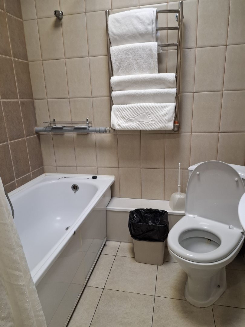 Отличное расположение отеля. Рядом есть вся необходимая инфраструктура, магазины, аптеки, кафе. Сам отель нас также приятно удивил. Номер чистый, уютный. Предоставляемая техника в рабочем состоянии, постельное бельё и полотенца чистые. Персонал вежливый и приятный!