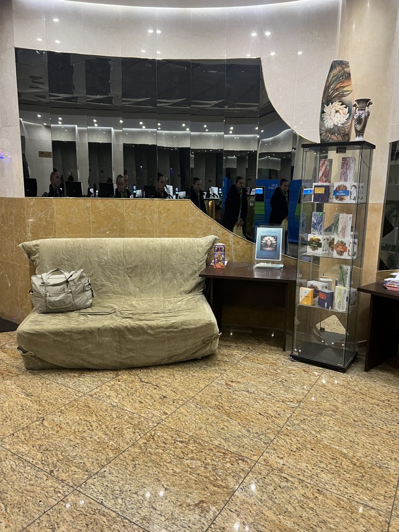 В номере нет уюта. Занавески не закрывают полностью окна, гардины провисшие. Рваный потолок. Неудобное расположение розеток. Опасный вид бойлера, заклеен малярным скотчем. Нет полок в душевой кабине, чтобы поставить шампуни и т.д. Нет крючка для полотенец у душевой кабины. Сама душевая кабина шатается и плохо сливается вода.
