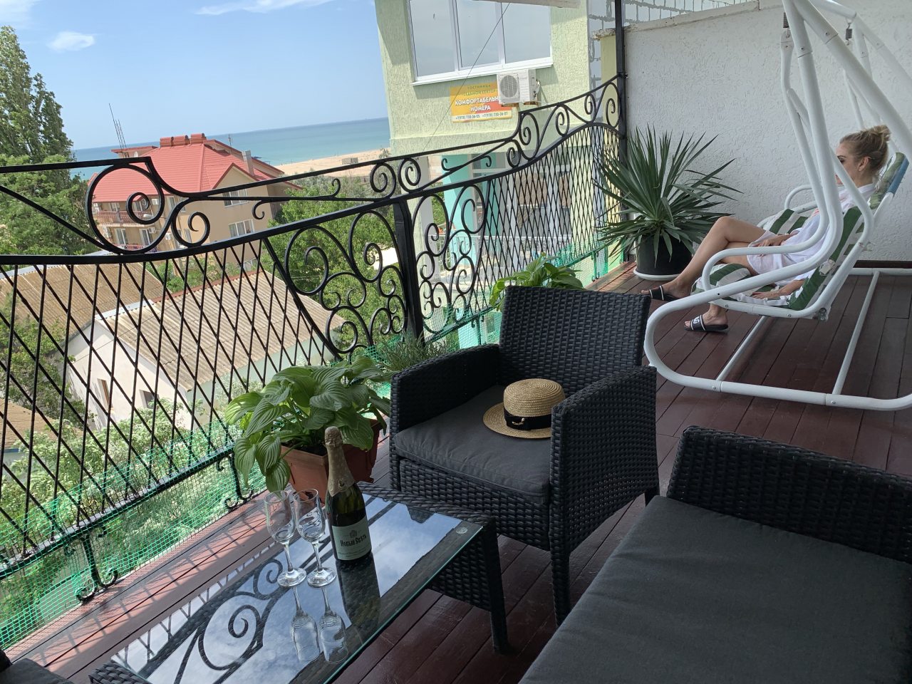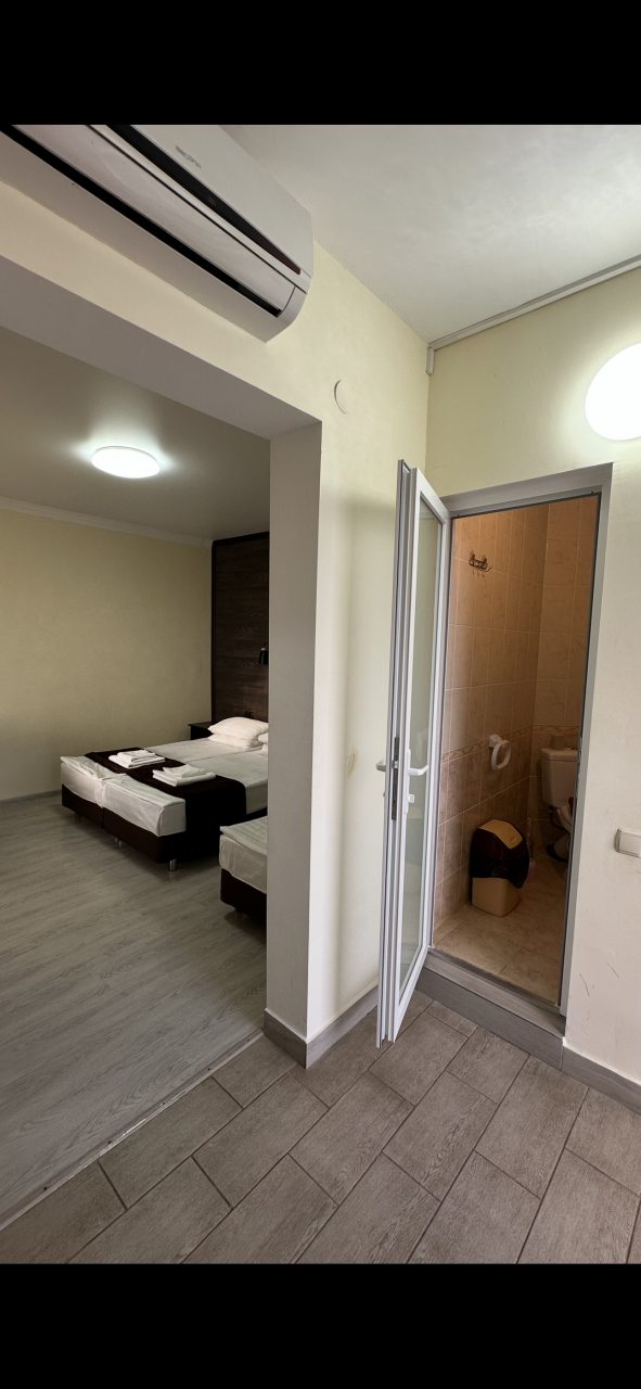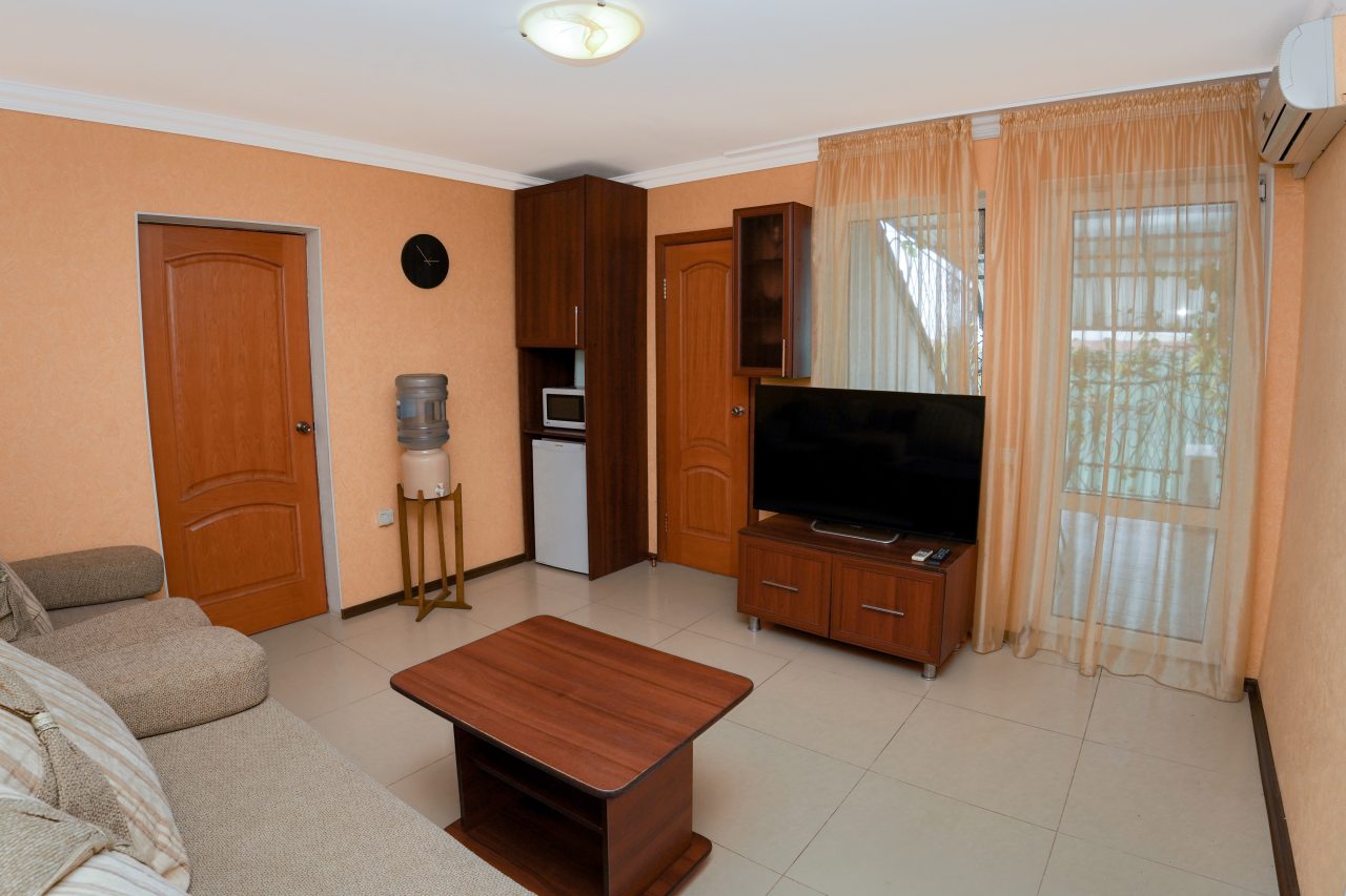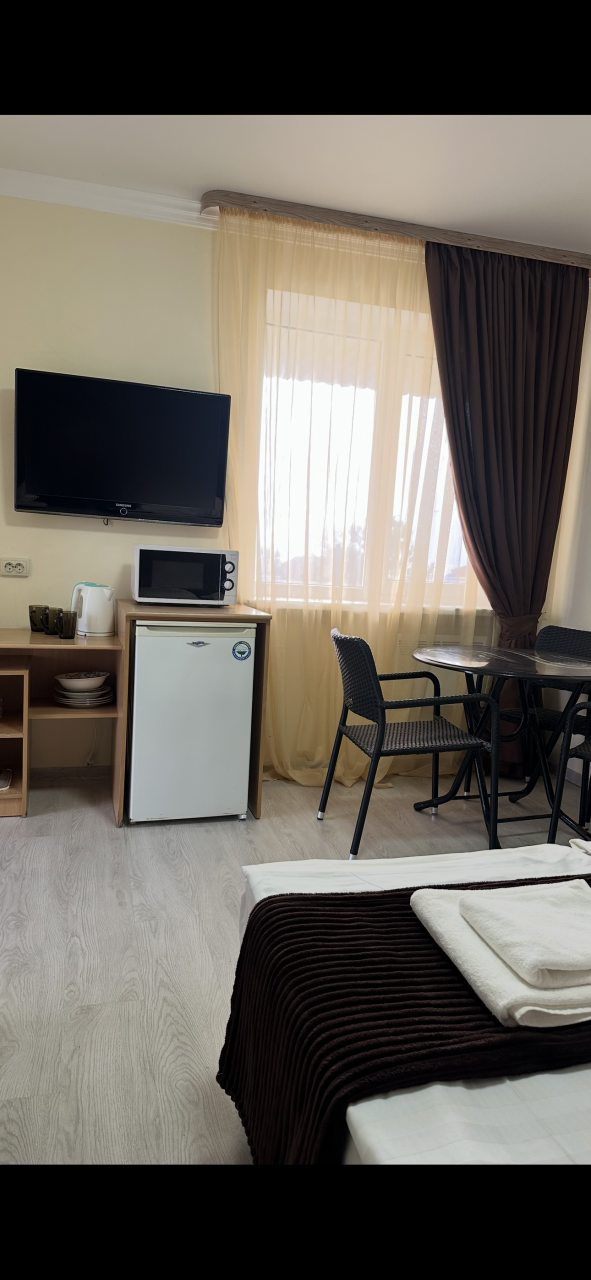 Плюсы: до моря реально 50 метров, есть кондиционер в номере, холодильник, чайник. Номер небольшой, но уютный. Для отдыха на море больше и не надо.