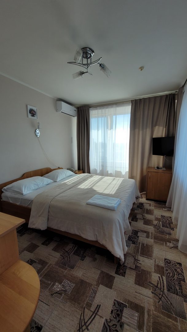 Номер стандартный, хоть шикарным не назовёшь, довольно просторный, с большим окном, на 11 этаже с видом на Волгу. В номере чисто, есть всё необходимое для жизни, в санузле ванна вместо душевой кабинки. Жаль, что всего на 2 дня остановились - очень понравилась Самара, и в этой гостинице вполне можно было бы пожить и подольше, цена умеренная. Бронировали без предоплаты (единственная такая гостиница, из ранее бронированных). В день выезда предложили оставить вещи в камере хранения на несколько часов до поезда (бесплатно!). Если посчастливится снова побывать в Самаре, другую гостиницу даже искать не будем.
