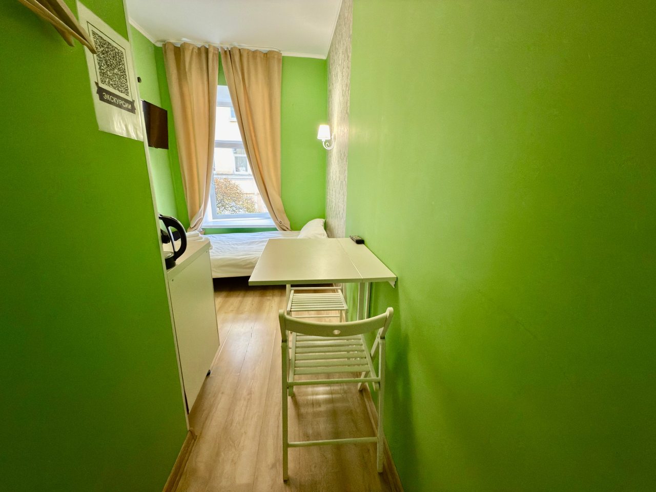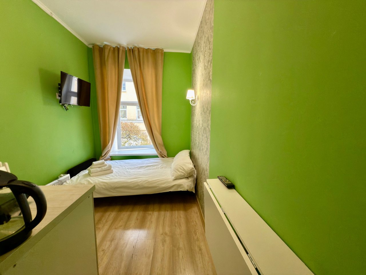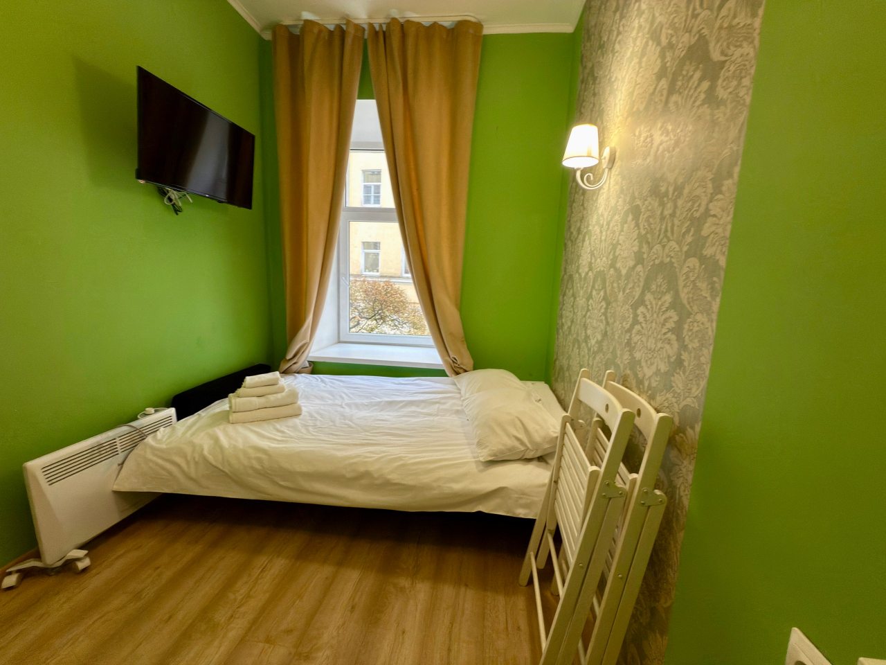 Из недостатков: никогда не оставляла отзывы, но здесь молчать не могу. Номер очень маленький, была к этому готова. Но. Очень жарко, особенно там, «на чердаке» - нет вентилятора хотя бы, окно не открыть - комары (сетки на окне нет). Мела на кровать, и провалилась в прямом смысле- она сломана. Телевизор долго не могли включить - батарейки выпадают, крышки у пульта нет. С трудом включила. «Показывает» один канал. В кавычках, потому что больше говорит, и то с перерывами. Рябит сильно, скрипит, прерывается. Позвонила админу с вопросами, а в ответ: «К сожалению, кровать мы сейчас отремонтировать не сможем, пультов тоже других нет». И, наконец, сняв обувь, захотелось снова ее надеть, т.к. было чувство грязного пола. НЕ РЕКОМЕНДУЮ, никогда больше здесь не остановлюсь. Бронировала в марте, подкупило близкое расположение к месту отъезда. За 4 500 можно снять жилье, соответствующее цене. Спасибо только за чистое белье. Пожалела, что не сделала фото.