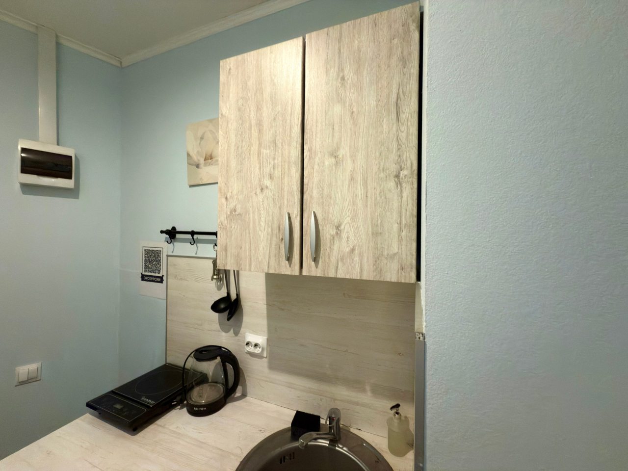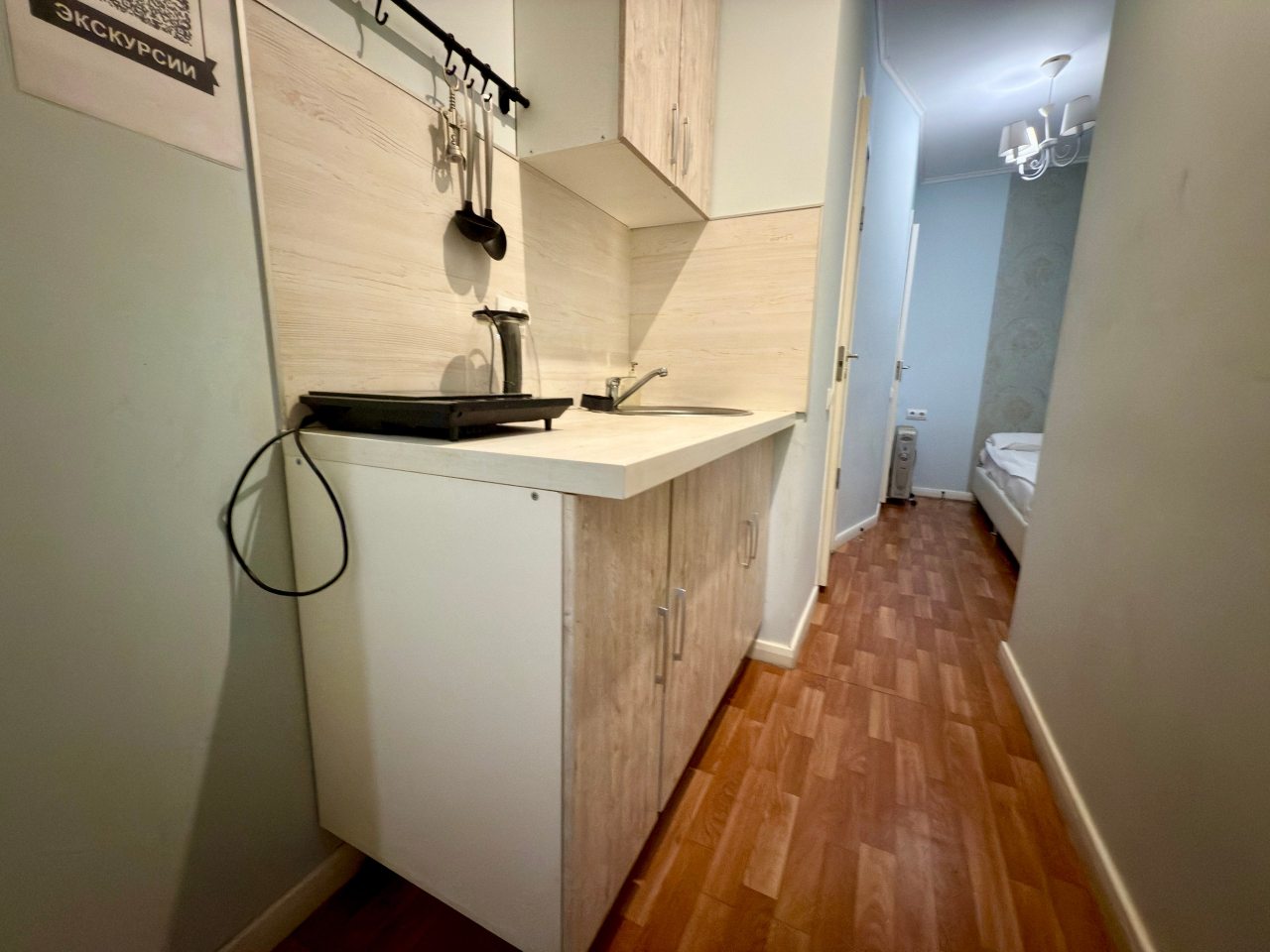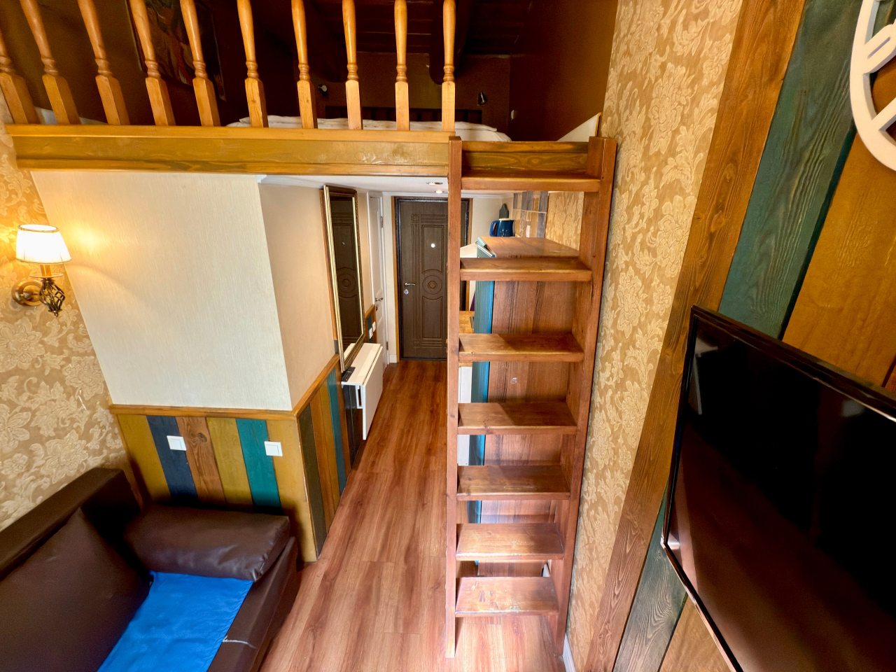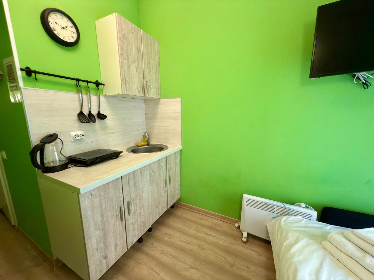 Из недостатков: никогда не оставляла отзывы, но здесь молчать не могу. Номер очень маленький, была к этому готова. Но. Очень жарко, особенно там, «на чердаке» - нет вентилятора хотя бы, окно не открыть - комары (сетки на окне нет). Мела на кровать, и провалилась в прямом смысле- она сломана. Телевизор долго не могли включить - батарейки выпадают, крышки у пульта нет. С трудом включила. «Показывает» один канал. В кавычках, потому что больше говорит, и то с перерывами. Рябит сильно, скрипит, прерывается. Позвонила админу с вопросами, а в ответ: «К сожалению, кровать мы сейчас отремонтировать не сможем, пультов тоже других нет». И, наконец, сняв обувь, захотелось снова ее надеть, т.к. было чувство грязного пола. НЕ РЕКОМЕНДУЮ, никогда больше здесь не остановлюсь. Бронировала в марте, подкупило близкое расположение к месту отъезда. За 4 500 можно снять жилье, соответствующее цене. Спасибо только за чистое белье. Пожалела, что не сделала фото.