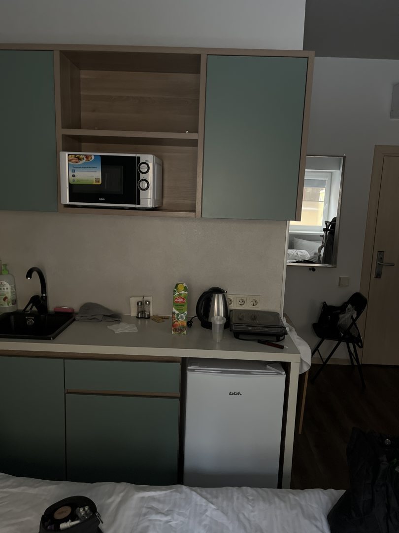 Расположение ( близко к метро и вокзалу). Слышимость только со стороны коридора, если кто то громкий ходит и хлопает дверью комнаты. Между номерами никого слышно не было, хотя, возможно не было соседей.