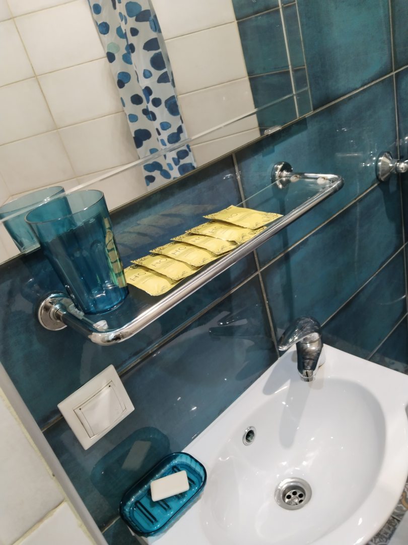 В номере все есть: чистые полотенца, мыльные средства, тапочки одноразовые, холодильник, чайник, чайные пакетики, сахар, мини кухня со всем необходимым.