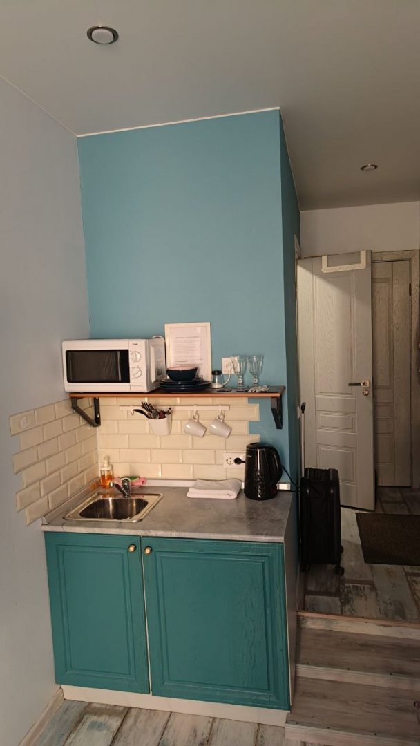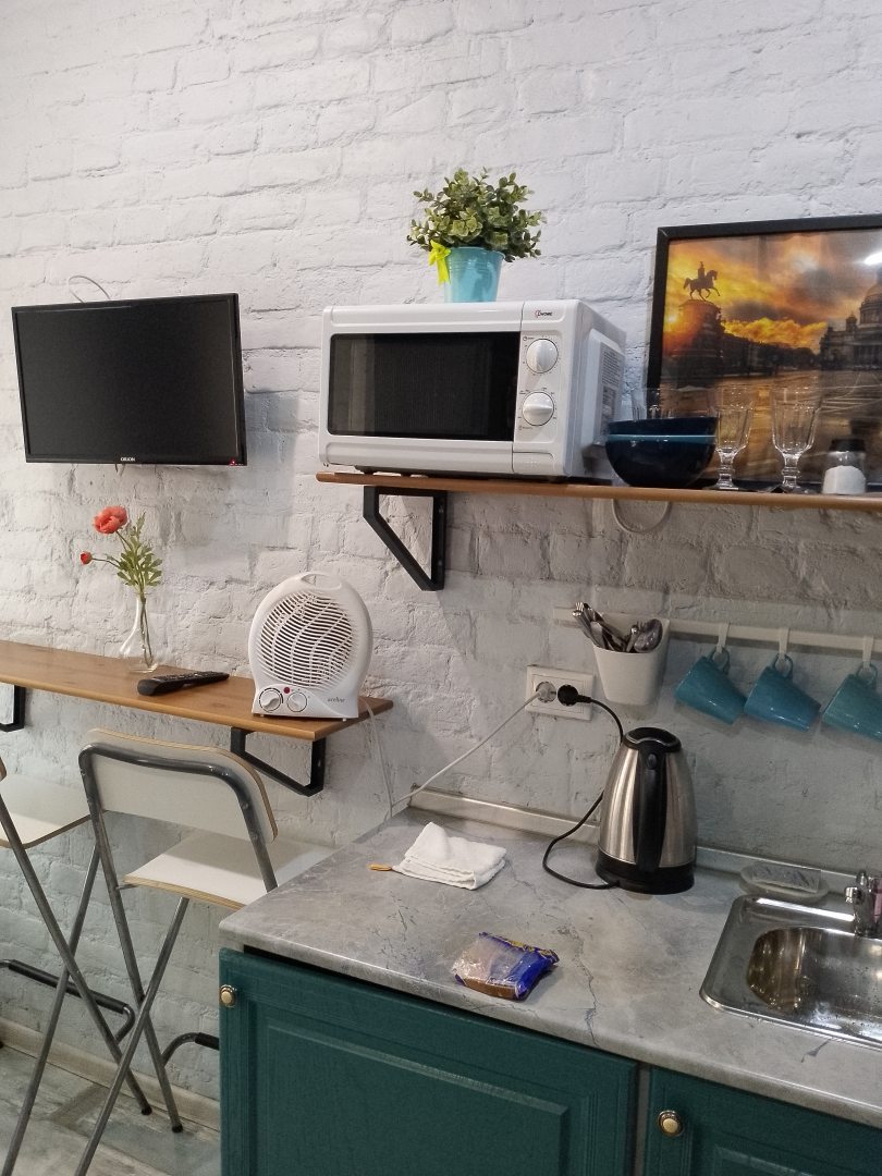 Понравилось расположение. Все близко. От Московского вокзала пешком. Все в шаговой доступности. Точки питания на любой вкус и кошелек. Очень находится на 2 этаже. Мебель, белье, посуда все в хорошем состоянии, чистое. В апартаментах уютно и красиво. Окна во внутренних двор, тихо. Напор воды хороший.