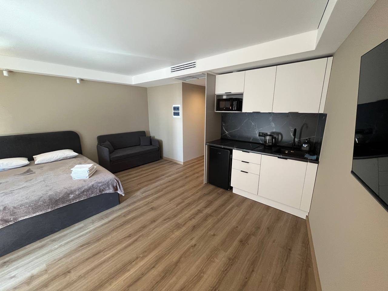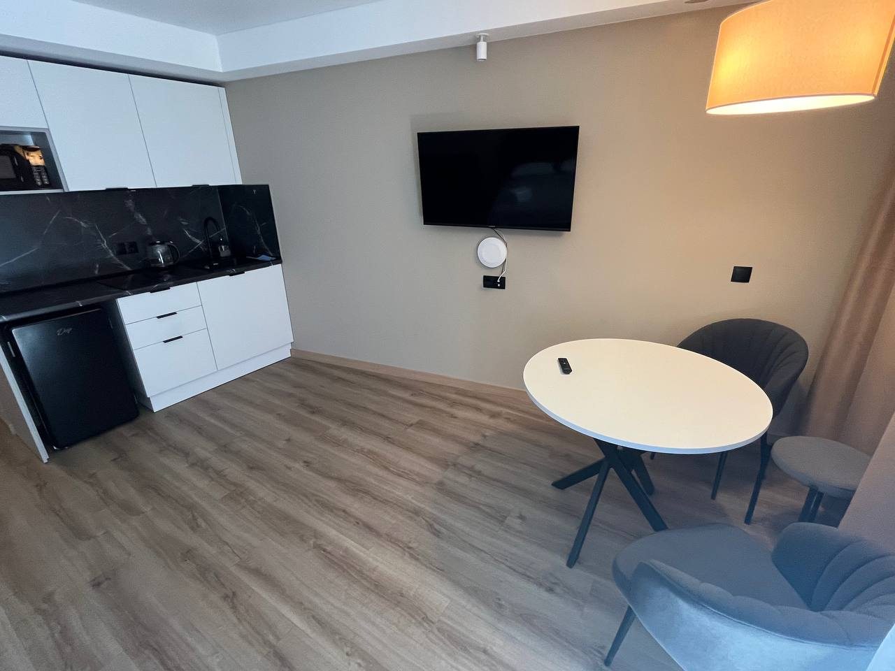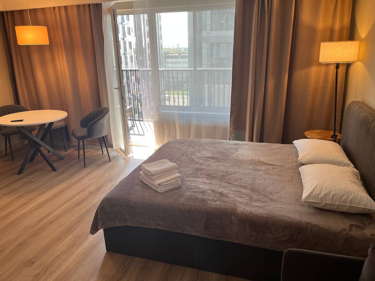 Отличные апартаменты. Когда бронировал на многое не рассчитывал, ведь апартаменты очень часто бывают в плохом состоянии. Но здесь все было отлично, прямо как на фото, чисто, новая мебель и техника. Помещение само по себе довольно просторное. Кухня маленькая, но ее хватило для простых манипуляций и перекуса. Отдельный плюс за стиралку, очень часто ее не хватает в подобных квартирах.