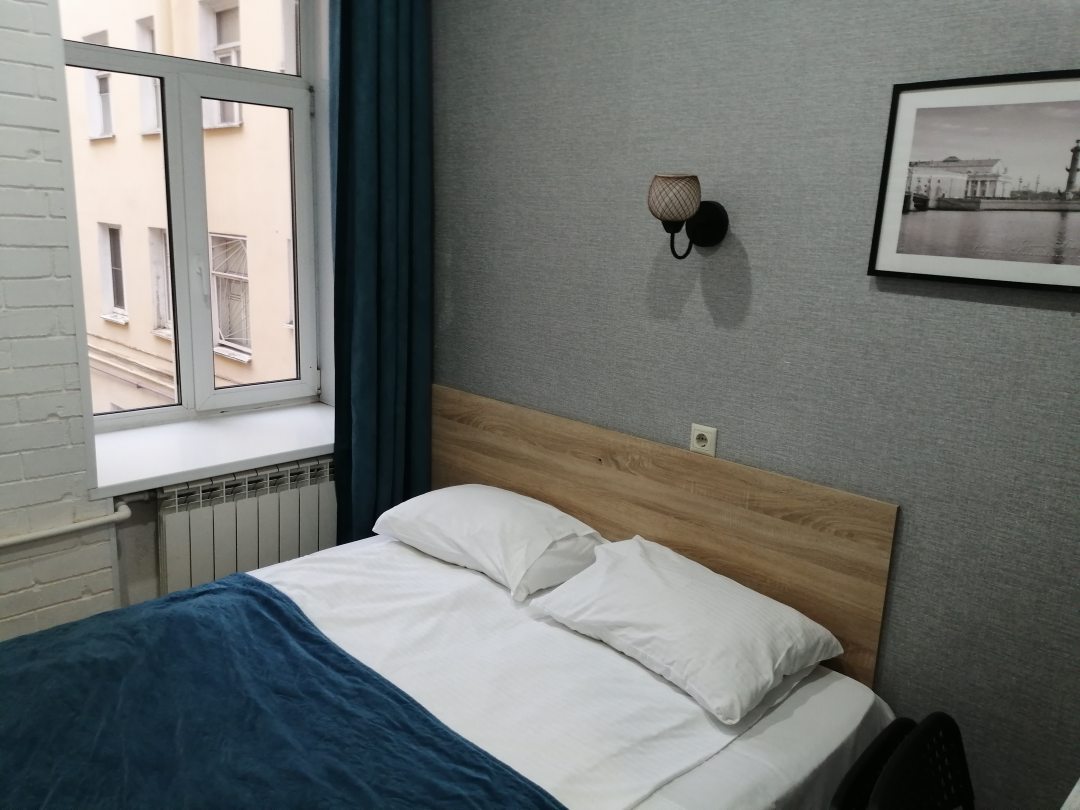 Номер попался прекрасный, окно во внутренний типичный петербургский дворик, тихо, бельё чистейшее, белоснежное, всё работало (ТВ, чайник, фен, холодильник), напор воды в душе дай бог каждому! Рядом с моей дверью в коридоре располагался кулер с холгор водой. Отсутствие шкафа не напрягало, так как приезжала на 3 дня, обошлась вешалкой у двери, двумя плечиками, стулом и чемоданом)