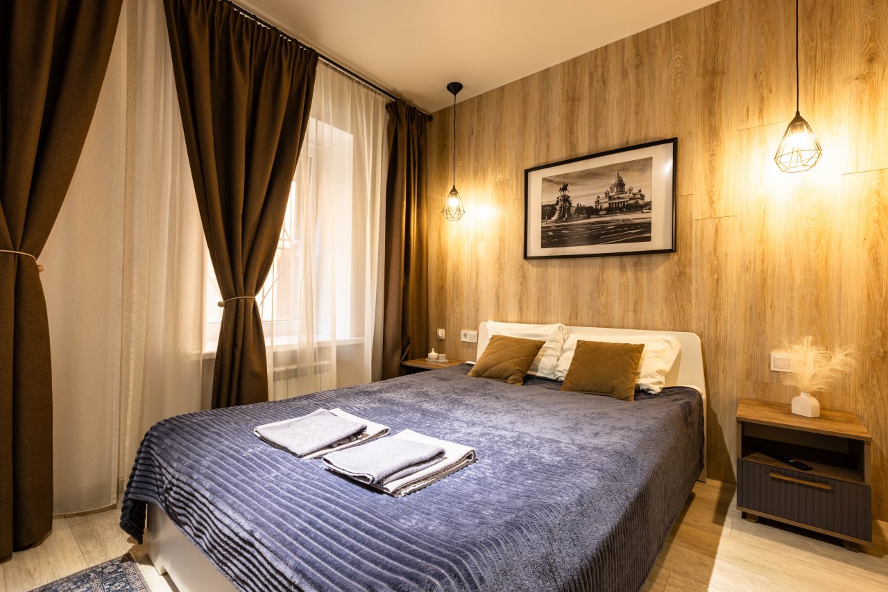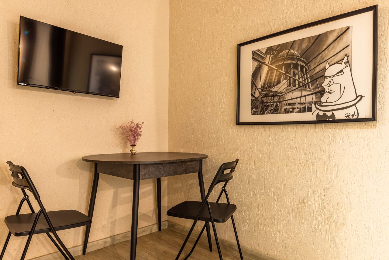Брали апартаменты в данном отеле, оформляли бронь заранее. Он рядом с вокзалом и недалеко от набережной реки Невы. В нашем распоряжении был двухместный номер под номером 3. Окна из него выходят во двор, и потому здесь достаточно тихо и уютно. Окна закрываются плотными шторами, мы отлично высыпались и наслаждались тишиной. Гарнитур кухонный в номере есть, санузел тоже свой. Прекрасно отдохнули и хорошо разместились.