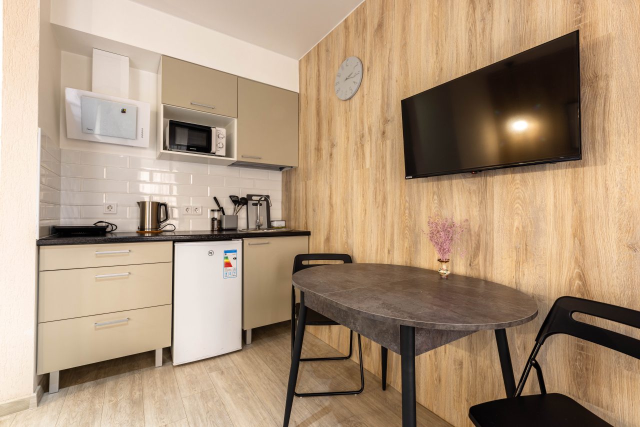 Просторные и современные номера оборудованы всем необходимым для комфортного проживания, включая полностью оснащенную кухню и уютную гостиную зону. Чистота и порядок на высшем уровне, что сразу создаёт ощущение домашнего уюта.