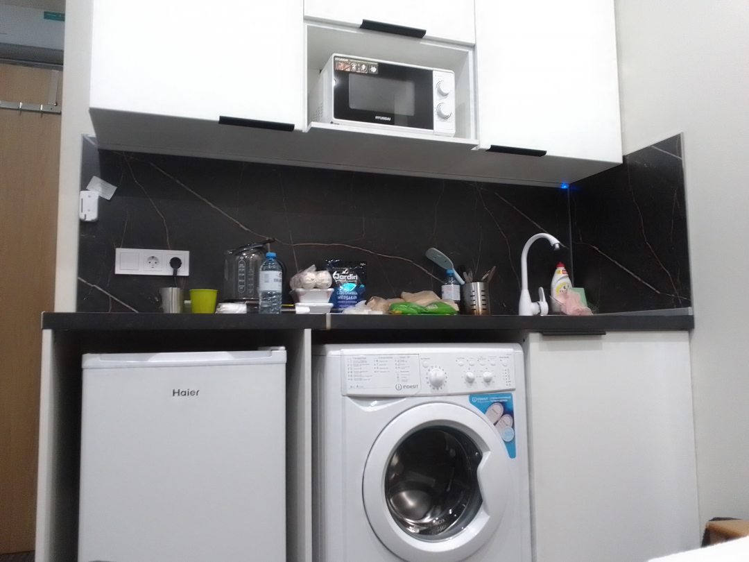 В этом апарт-отеле мы забронировали заранее трехместный вариант размещения с дополнительным диваном. На нем спал наш сын. Квартира вышла не сильно дорого. Метро находится в нескольких минутах ходьбы. Ванная комната тоже в отличном состоянии и укомплектована.