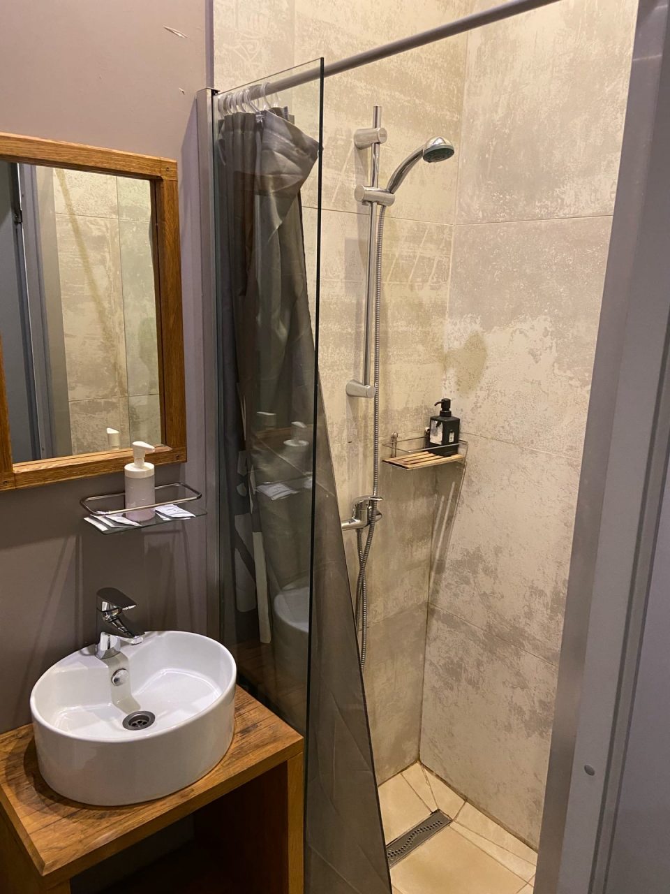 Из недостатков: плесень на верхней части стен в сан узле, чиркаши от обуви на стенах, грязный стул (уже совсем не белый). Из-за того что нет окна, кажется, что воздух спёртый. Но цена за сутки очень даже хорошая.