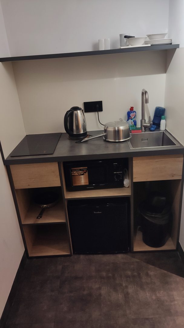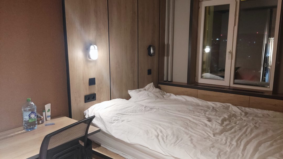 В номере чисто, очень отзывчивый персонал. Возможно решить проблемы онлайн. Хорошая посуда, за исключением сковороды. Рядом есть магазины, кафешки. Хорошо работает доставка.