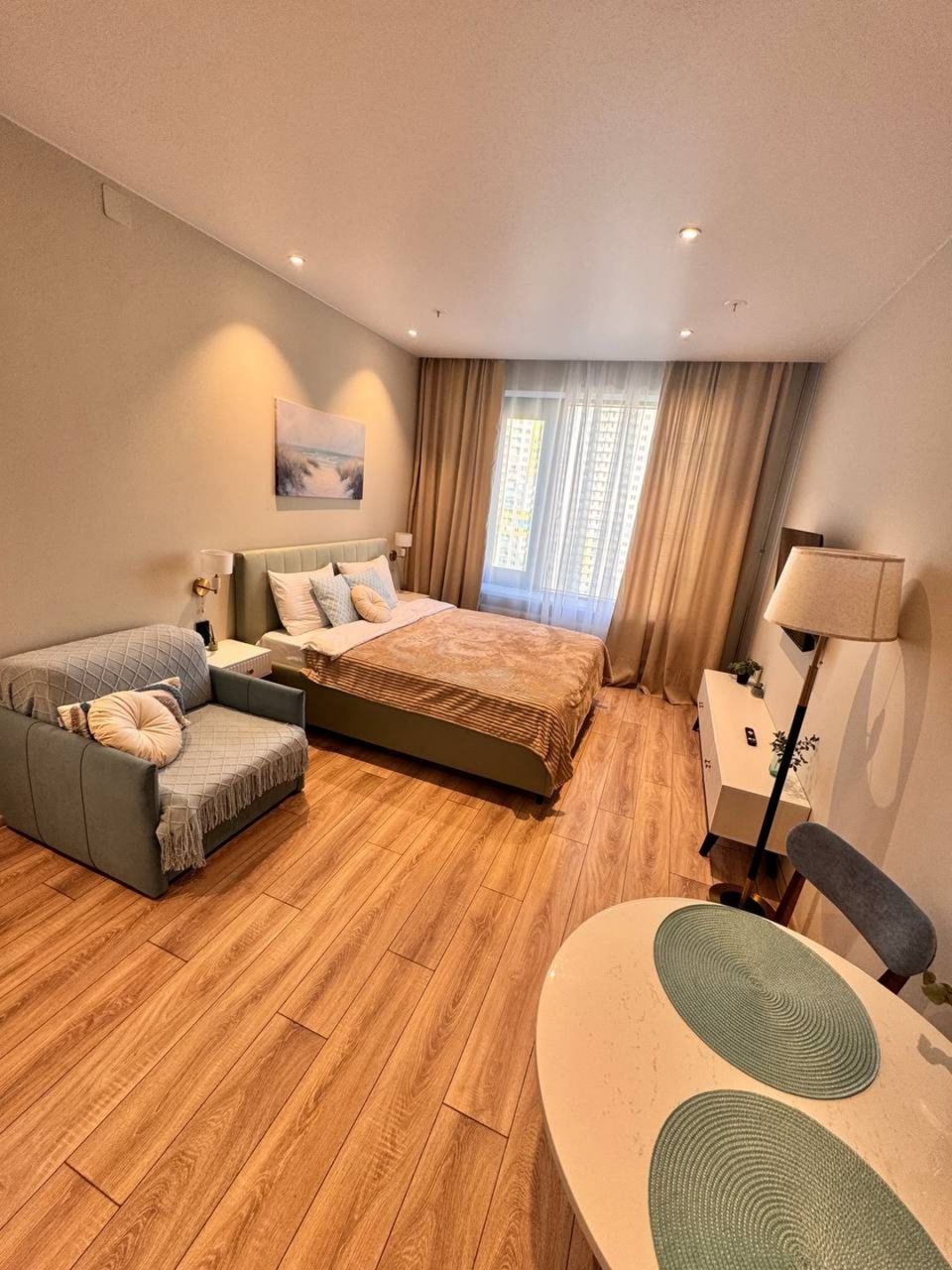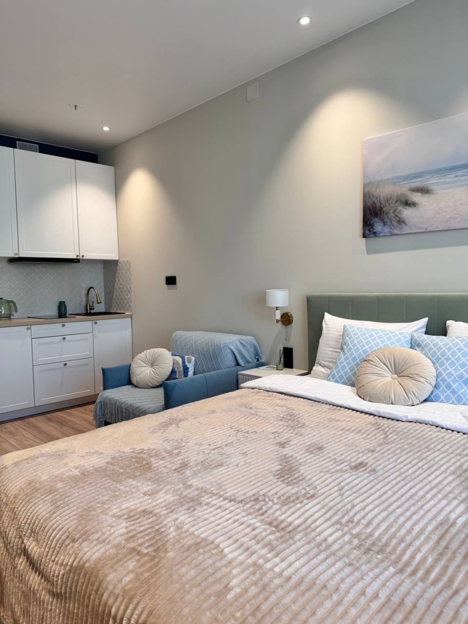 Оригинальное оформление, удобное расположение мебели. Представлено все самое лучшее для нормального проживания. Расслабляешься мгновенно, спальня отличная, прекрасный матрас, ночлег идеальный. Глухая тишина дарит спокойный сон. Без соседей живёшь свободно, помещение большое, уют усиливается ежедневно. Решение выбрать данную квартиру правильное.