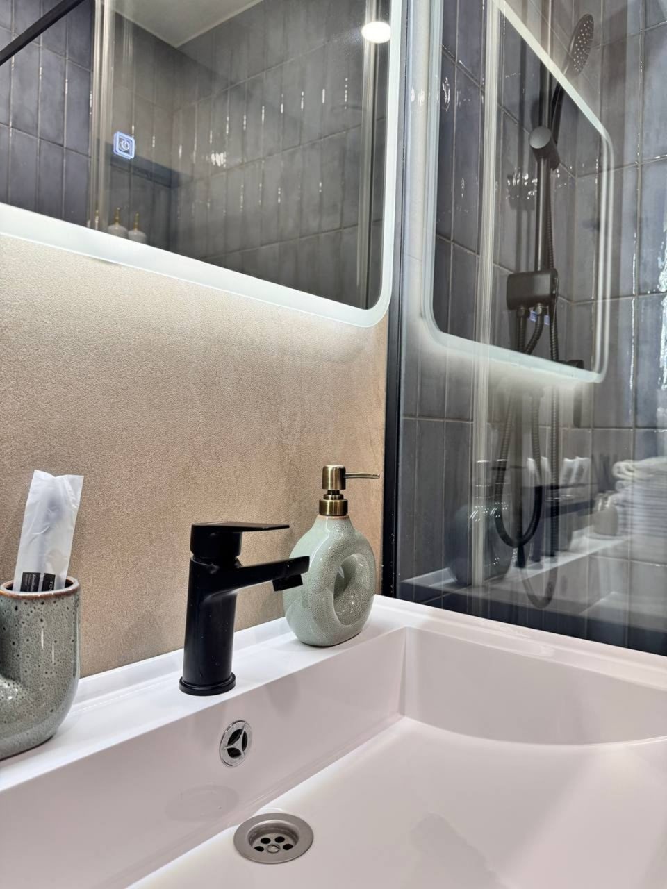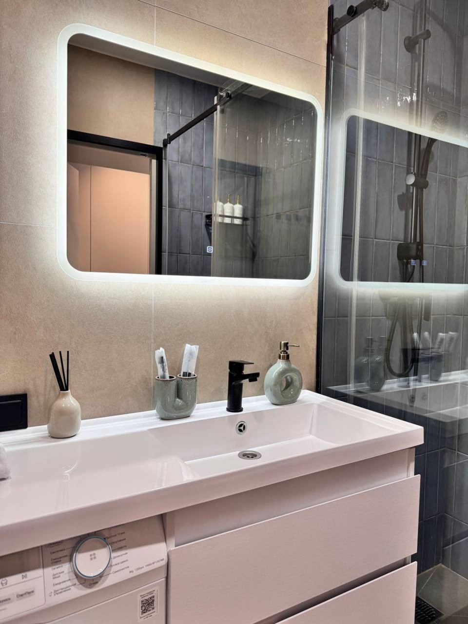 Красивый отель и номер, всё чистенько, всё новое, красивая ванна. Порадовало наличие мультиварки, хоть мы ею и не пользовались. Все бытовые приборы, которые были заявлены, присутствовали.