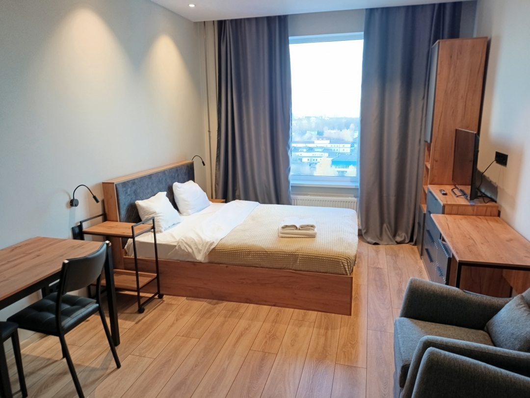 Просторная, чистая , светлая комната. Удобная кровать. Прекрасный вид из окна.