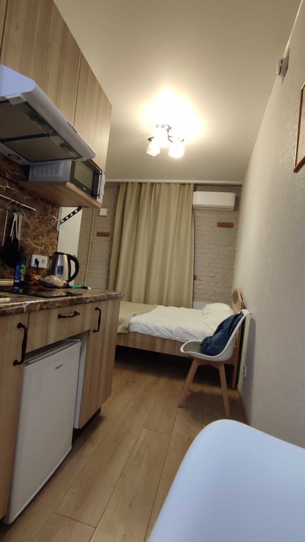 Отличное месторасположение. Хорошая транспортная развязка. Отель находится во дворе дома, в номере тишина. Отзывчивые сотрудники, заселили раньше на 3 часа, причём в номер с двуспальной кроватью, хотя бронировал одноместный. В номере есть небольшая кухня со всеми необходимыми приборами, посудой и техникой. Везде чисто и опрятно. Была бы стиральная машина, вообще цены бы не было:)