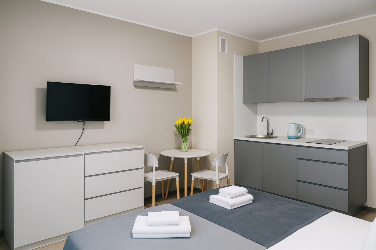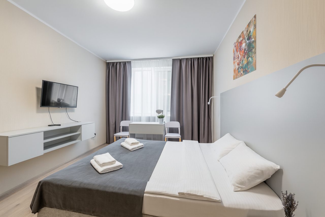 Отличная студия, очень уютно. Все необходимое есть. Получила удовольствие от проживания. Удобное расположение. Необходимые магазины рядом. Прекрасная транспортная развязка в шаговой доступности. Часто приезжаю в Питер,теперь останавливаться буду только в этом отеле. Спасибо