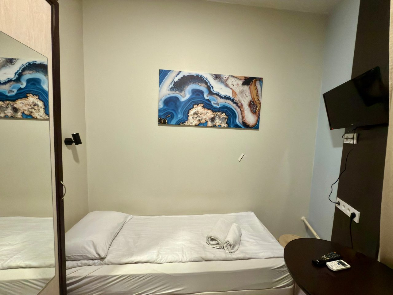 Понравилось место расположения, центр, рядом набережная р.Фонтанки и Невский проспект. Также понравилось белоснежное белье, белые полотенца и для душа большое и для рук и под ноги на пол, удобный матрац на кровати. Есть в номере чайник и, конечно, же туалет с душем. Напор воды хороший, есть жидкое мыло.