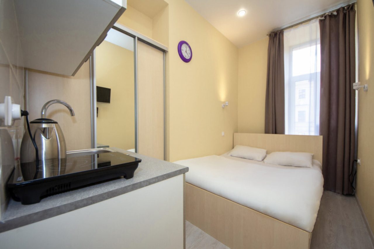 Замечательное расположение. Одна минута и ты на Невском проспекте. В номере чисто, есть кондиционер, холодильник, чайник. Если есть желание готовить еду в номере, то можно воспользоваться электроприткой. Все достопримечательности поблизости, недалеко продуктовый магазин, столовая, метро.