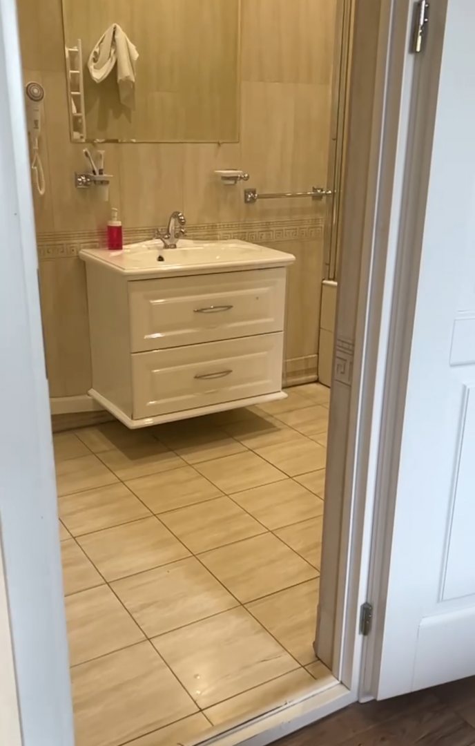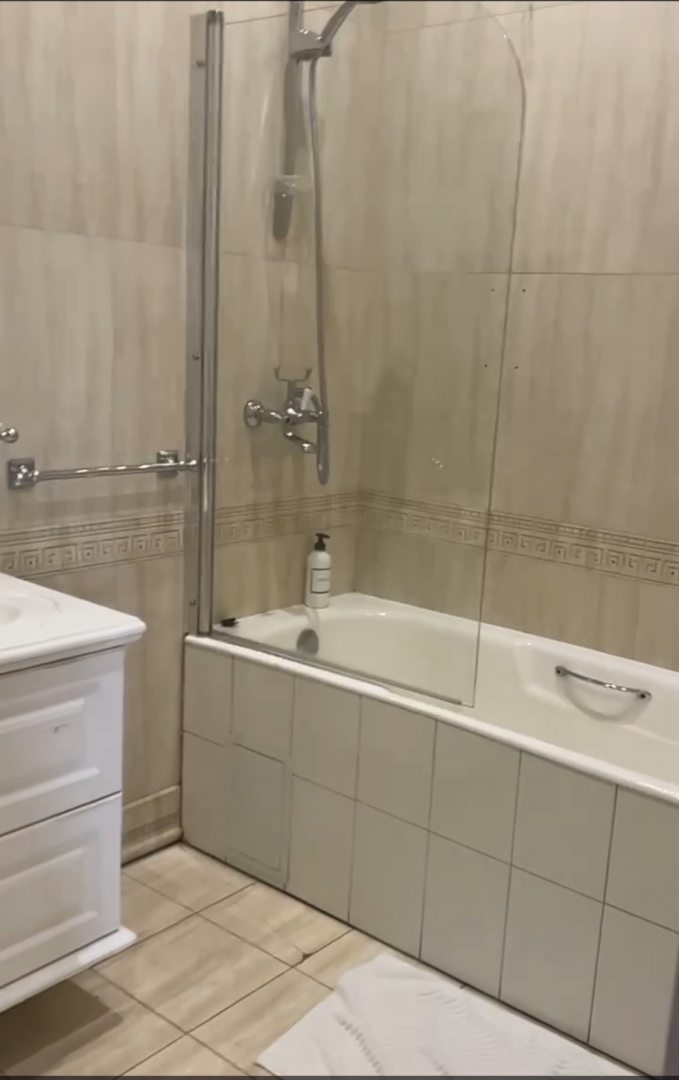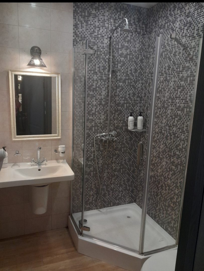 Из недостатков: не скажу, что нам это не понравилось, просто отмечаю как факт - душевой кабины нет, просто отгорожен угол в санузле, и это создаёт некоторое неудобство, потому что вода протекает сквозь щель под дверцей и на полу ванной комнаты образуется лужа. Чтобы этого избежать, нужно следить за направлением воды из душевой лейки.