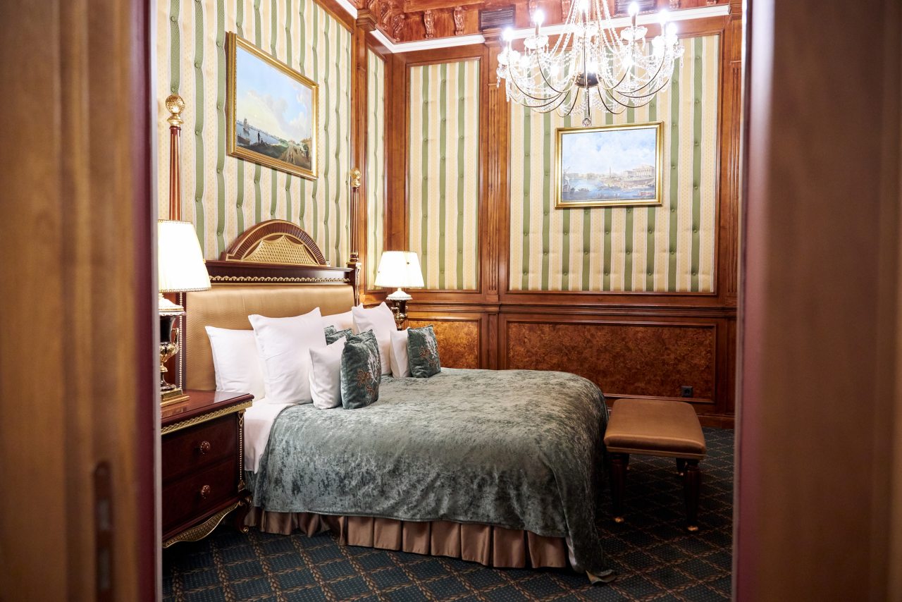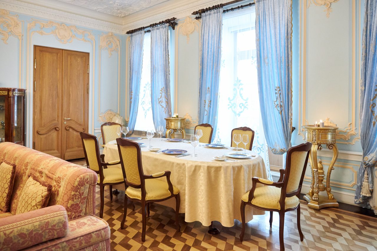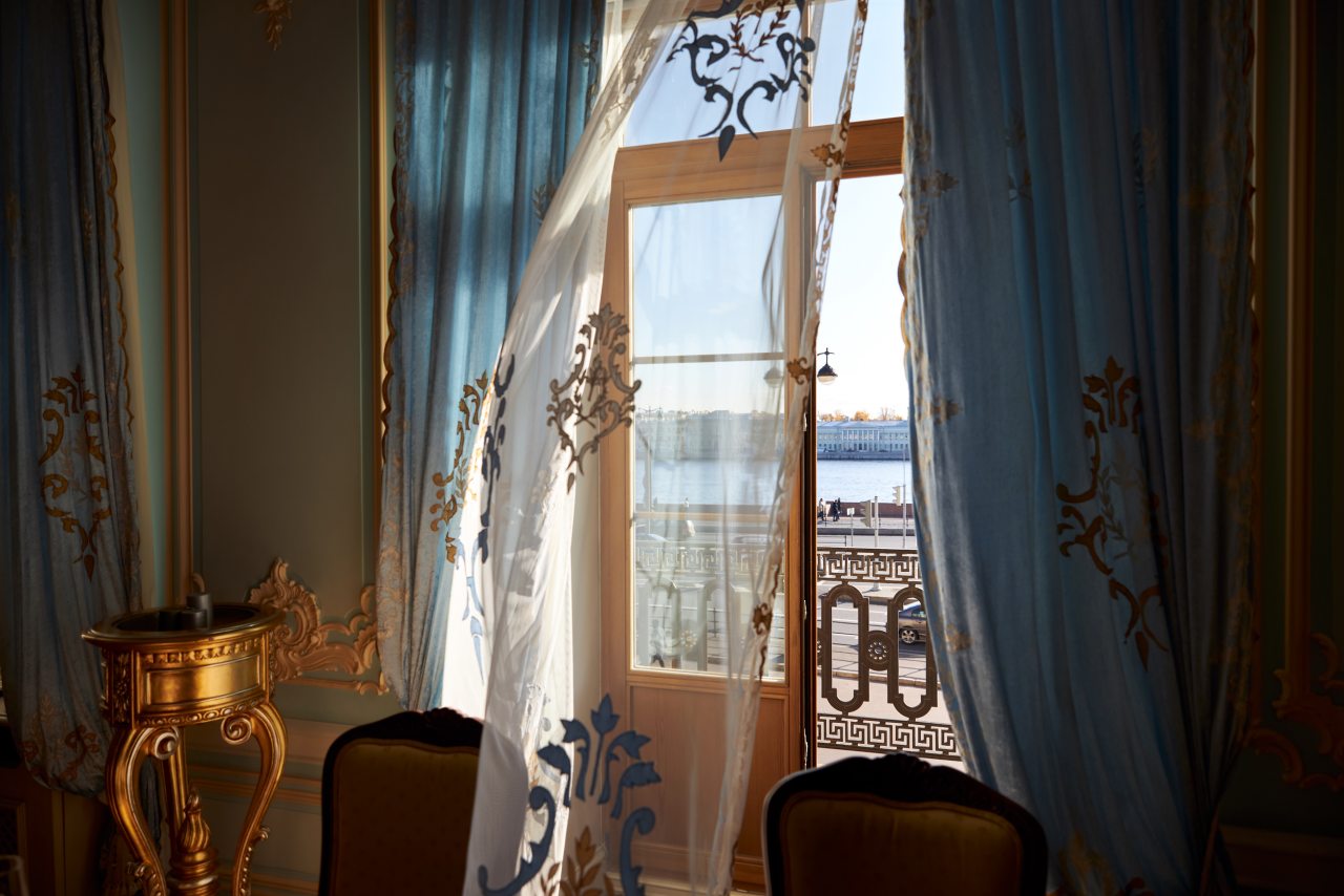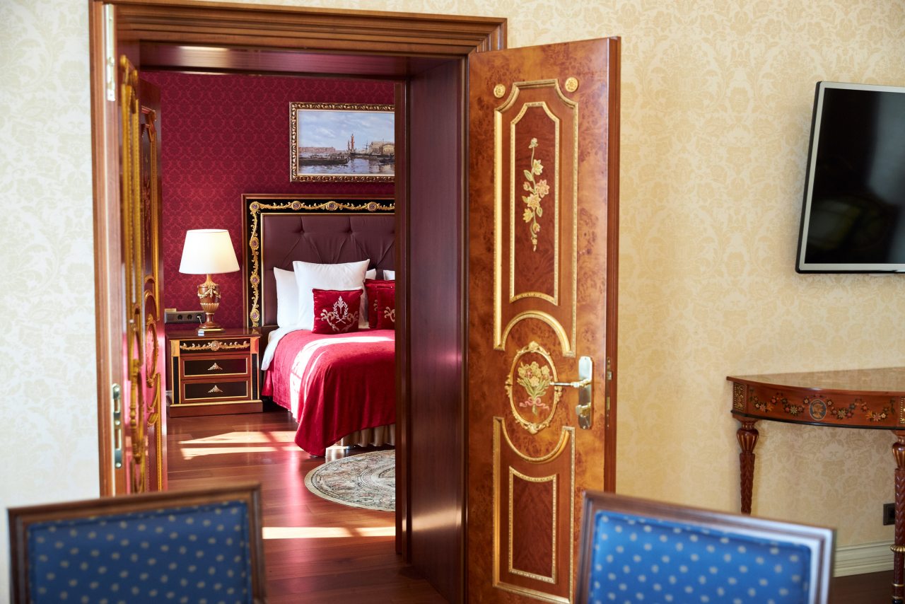 Отель очень приличный! Пять звезд однозначно! Очень хороший персонал, всегда готов во всём помочь. Отель внутри очень похож на дворец, приятно радует глаз и интерьеры и убранства. Номер замечательный. Постельное бельё шикарное, итальянское. Мебель изумительная, красивая. Всё работает и климат контроль и инженерные системы. Ванная комната соответствует всем европейским стандартам. На ночь окна можно закрыть плотными шторами и белые ночи не мешают спать. В отеле очень тихо. Ресторан приятно удивил настоящей русской кухней. Очень вкусно, даже есть хреновушка. Это хорошая настойка на хрене. Завтраки также хорошие и разнообразные. Мы проехали многие станы, более 50 , бывали в разных пятизвёздочных отелях. Этот отель несомненно вошёл в лучшую десятку отелей мира. Рекомендую любителям дворцовой аутентичности и семьям с детьми. Тишина и уют. Можно с собачками.