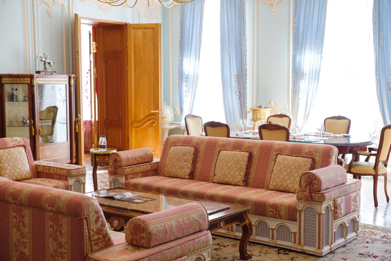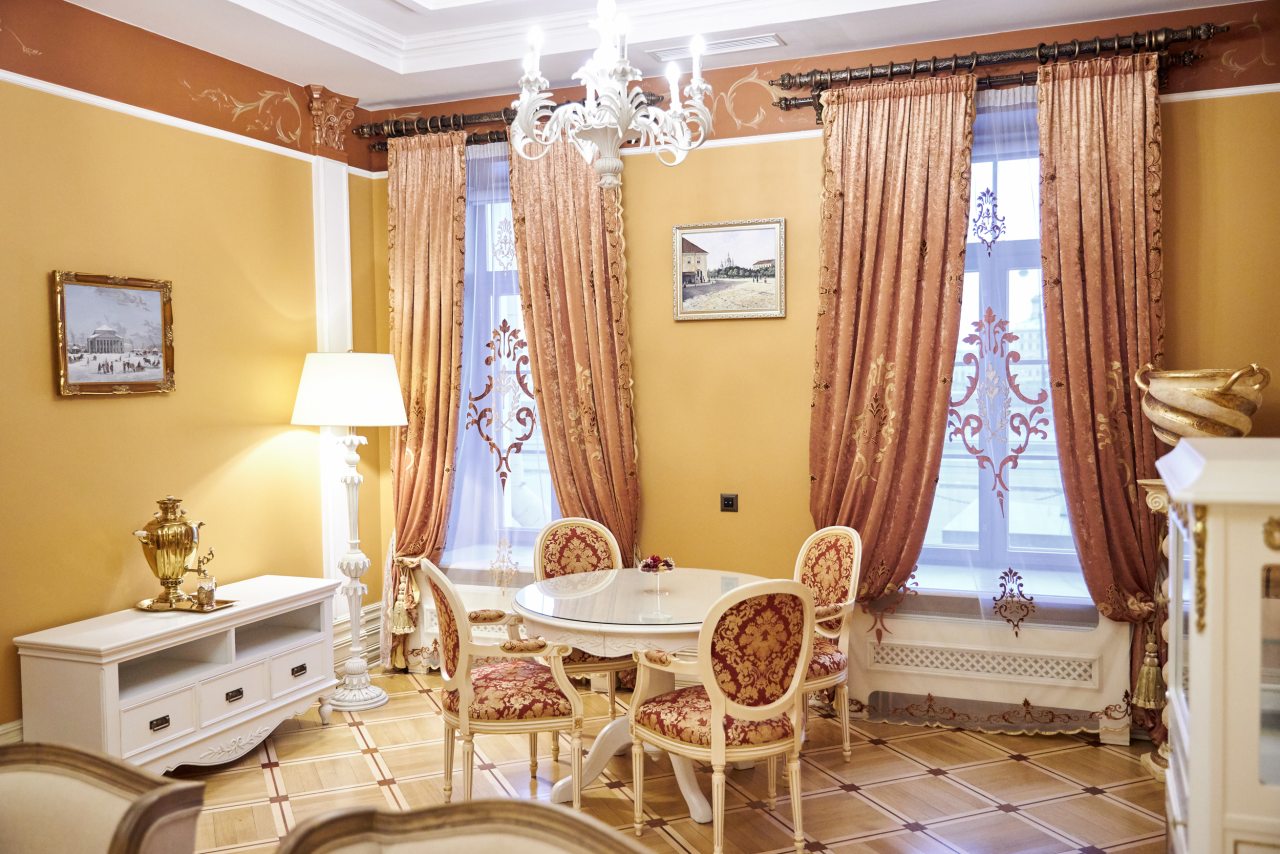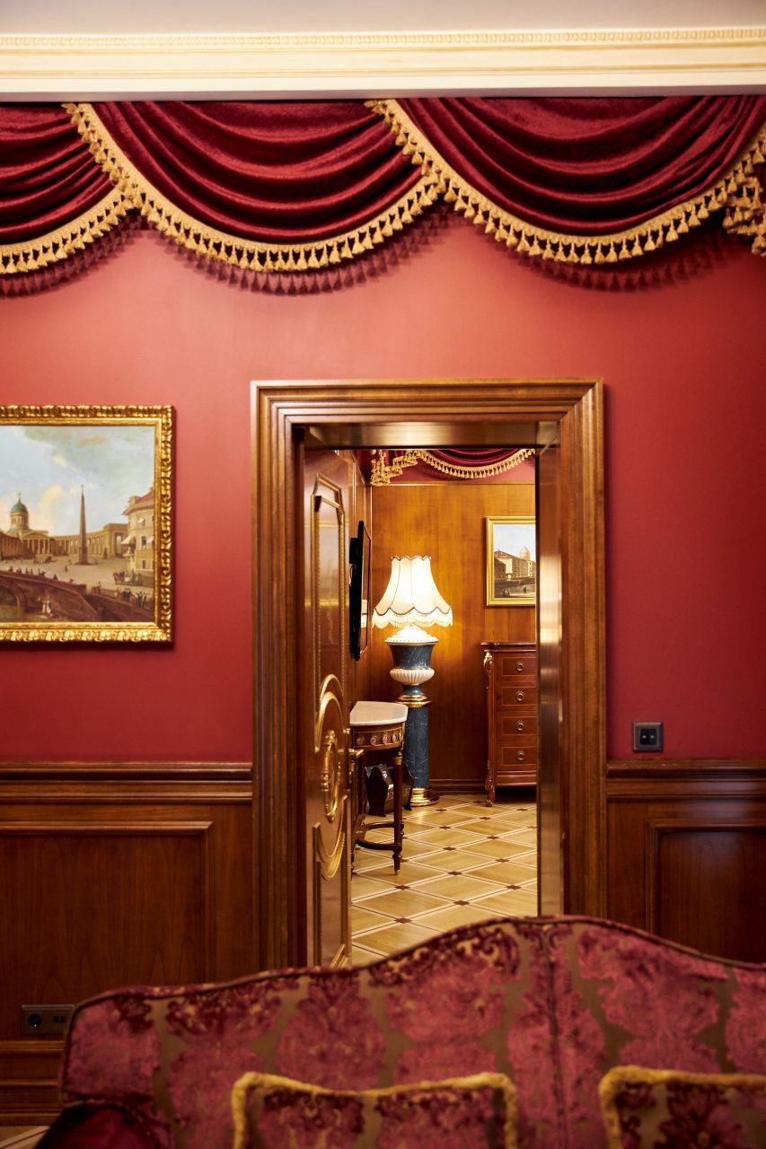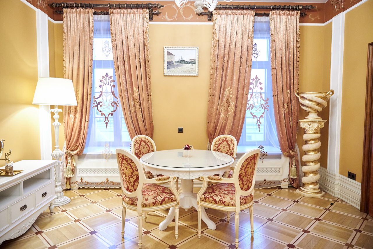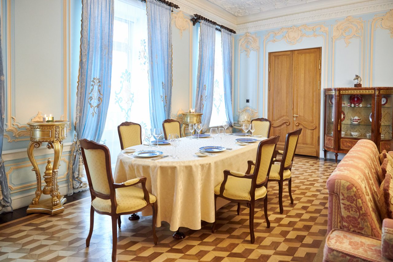 Отель очень приличный! Пять звезд однозначно! Очень хороший персонал, всегда готов во всём помочь. Отель внутри очень похож на дворец, приятно радует глаз и интерьеры и убранства. Номер замечательный. Постельное бельё шикарное, итальянское. Мебель изумительная, красивая. Всё работает и климат контроль и инженерные системы. Ванная комната соответствует всем европейским стандартам. На ночь окна можно закрыть плотными шторами и белые ночи не мешают спать. В отеле очень тихо. Ресторан приятно удивил настоящей русской кухней. Очень вкусно, даже есть хреновушка. Это хорошая настойка на хрене. Завтраки также хорошие и разнообразные. Мы проехали многие станы, более 50 , бывали в разных пятизвёздочных отелях. Этот отель несомненно вошёл в лучшую десятку отелей мира. Рекомендую любителям дворцовой аутентичности и семьям с детьми. Тишина и уют. Можно с собачками.