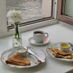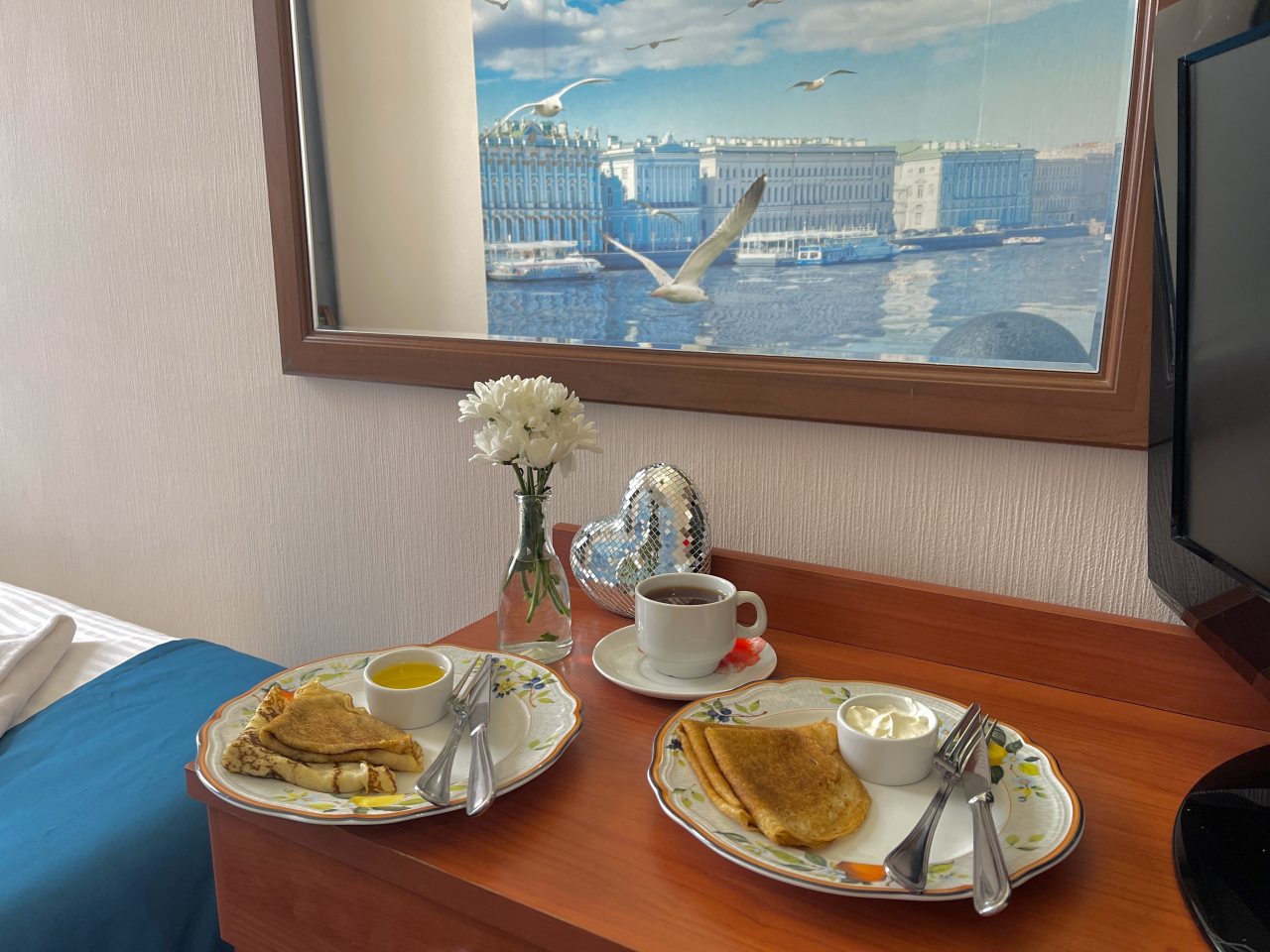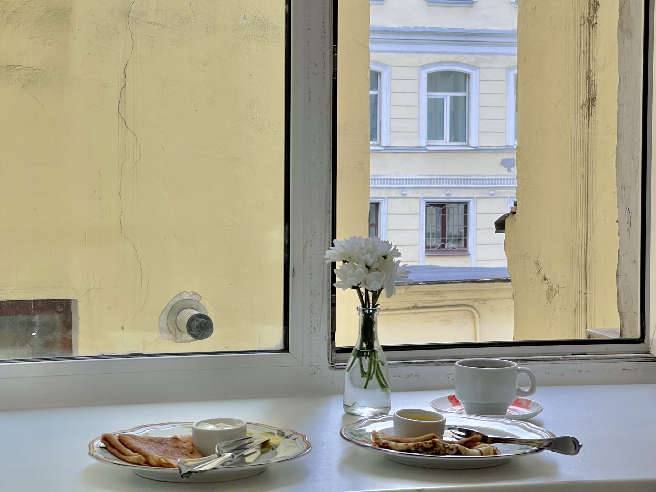 собиралась. В остальном все хорошо. Кухней не пользовались. Справа при выходе из арки на канал отличное кафе восточное, очень всё вкусно, приятный персонал, современный дизайн, цены замечательные. Очень советуем. Окна в номерах двойные, первое даже не закрывали, только те,которые внутри, ночью дороги не слышно особо, спали хорошо. Подушки и матрасы удобные. Бельё чистое. Никаких посторонних запахов в комнатах не было. На втором этаже утюг, очень пригодился) В целом очень довольны. Вернёмся в БДТ, постараемся остановиться тут же. Спасибо!