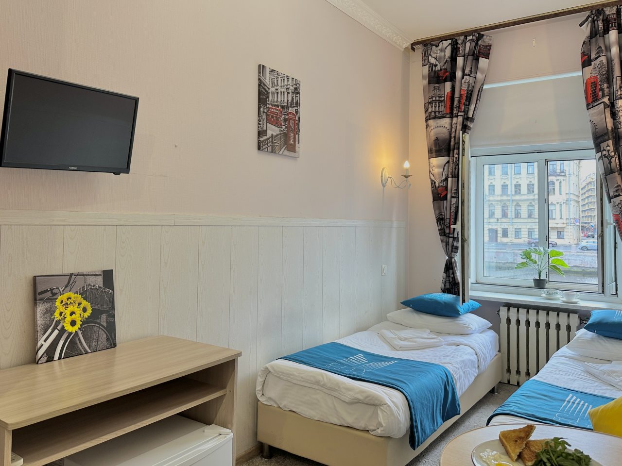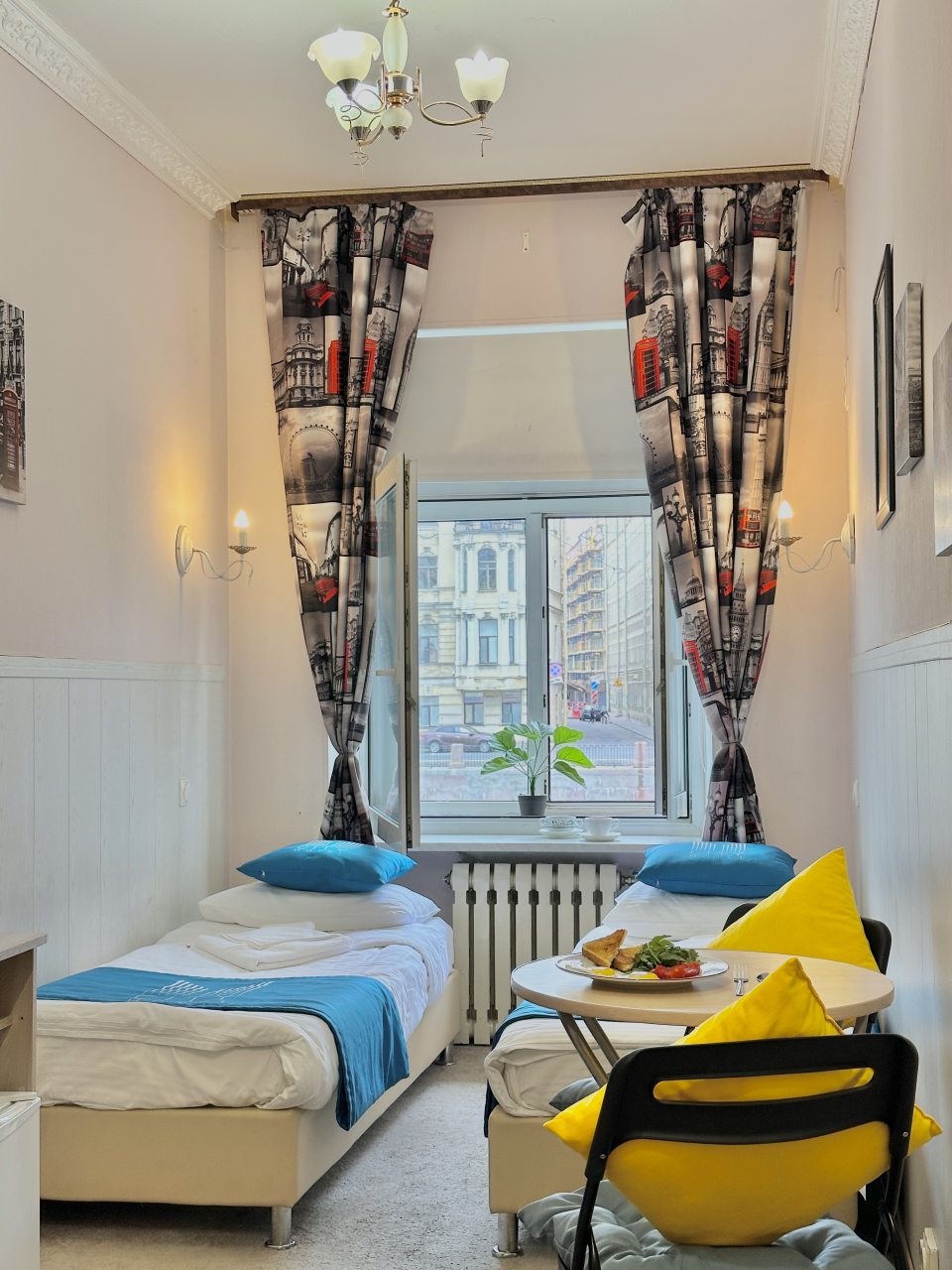 Останавливались в начале июля в этом отеле, выбрали специально поближе к БДТ. Удобно, чисто. У нас были номера на первом этаже 2 и 3 . Единственное, во 2м сломана дверца душа и короткая простыня, которая постоянно