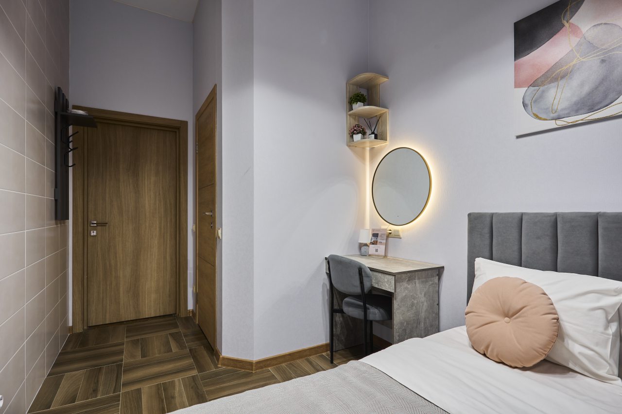 Отличное постельное белье и матрас, обеспечили отличный сон.Близость к многим достопримечательносям и метро сэкономили деньги на такси. Завтрак в постель, удобно. Отличная вода в общем кулире. При желании заваривать чай и кофе в номере, рекомендую брать с собой маленький чайничек и нет зубных пренодлежностей, взять с собой. Всем остальное есть в номере в достатке. Отличная гостиница, если в Питере, то останавливаться здесь, рекомендую.