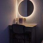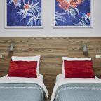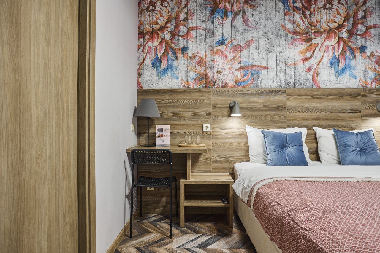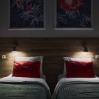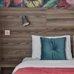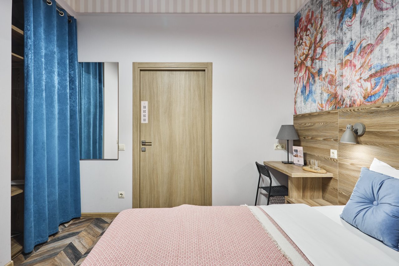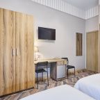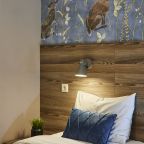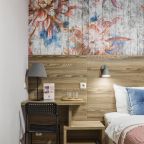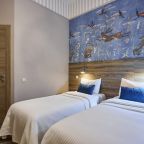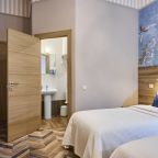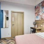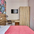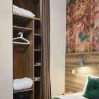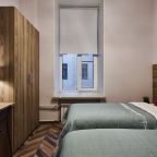 Отель находится во дворе, окна выходят так же во двор-колодец, ночью абсолютная тишина, на окнах блэк аут жалюзи, прекрасно закрываю окна. Очень удобная кровать, с очень хорошим пастельным бельем и одеялом. Номер небольшой, но очень удобный. Такого количества розеток нигде не встречала. Чистый и уютный, уборка ежедневная. Завтрак вкусный, кофе со сливками из кофе-машины. Холодильника нет.