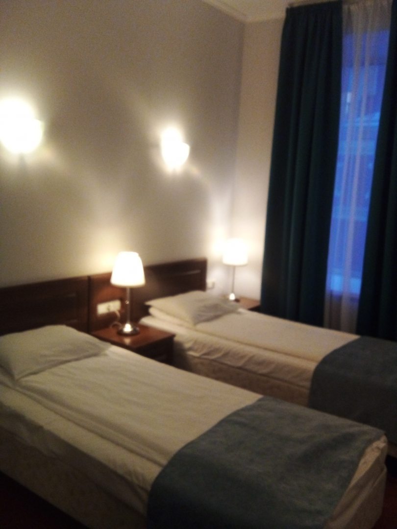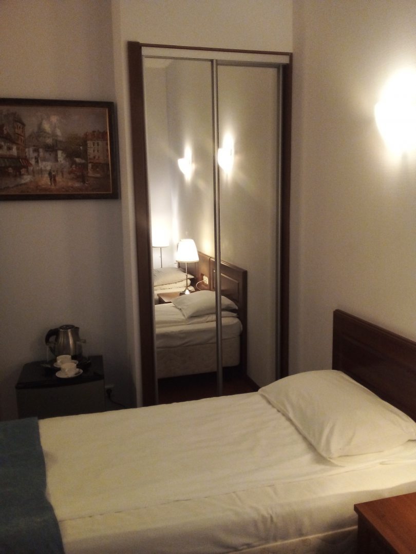 Славный, стильный отельчик. Чистенько. Порадовала большая кровать, а не две сдвинутые. Есть холодильник, чайник, стаканы, чашки. Если требуется, посуду можно взять на кухне. Кулеры на этаже стильно спрятаны. Зеркала, ковровые покрытия, элементы интерьера, картины, даже в номере. Историческое здание в центре, близость к транспорту, торговому центру, вокзалу. Стоимость номера демократичная для центра, более чем.