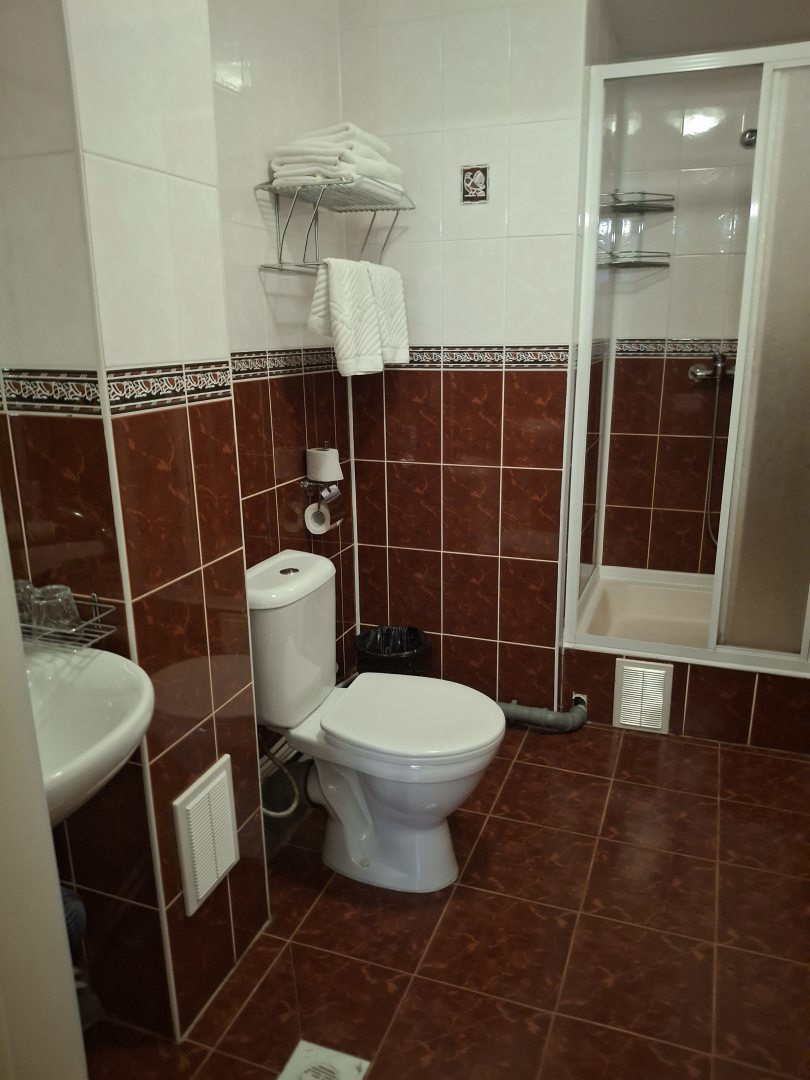 Из недостатков: из минусов холодный пол в ванной и в душе, отсутсвие ковриков, берите с собой тапочки, с интернетом по Wi if тоже были проблемы постоянно отключался от роутера, пользовались мобильным.
