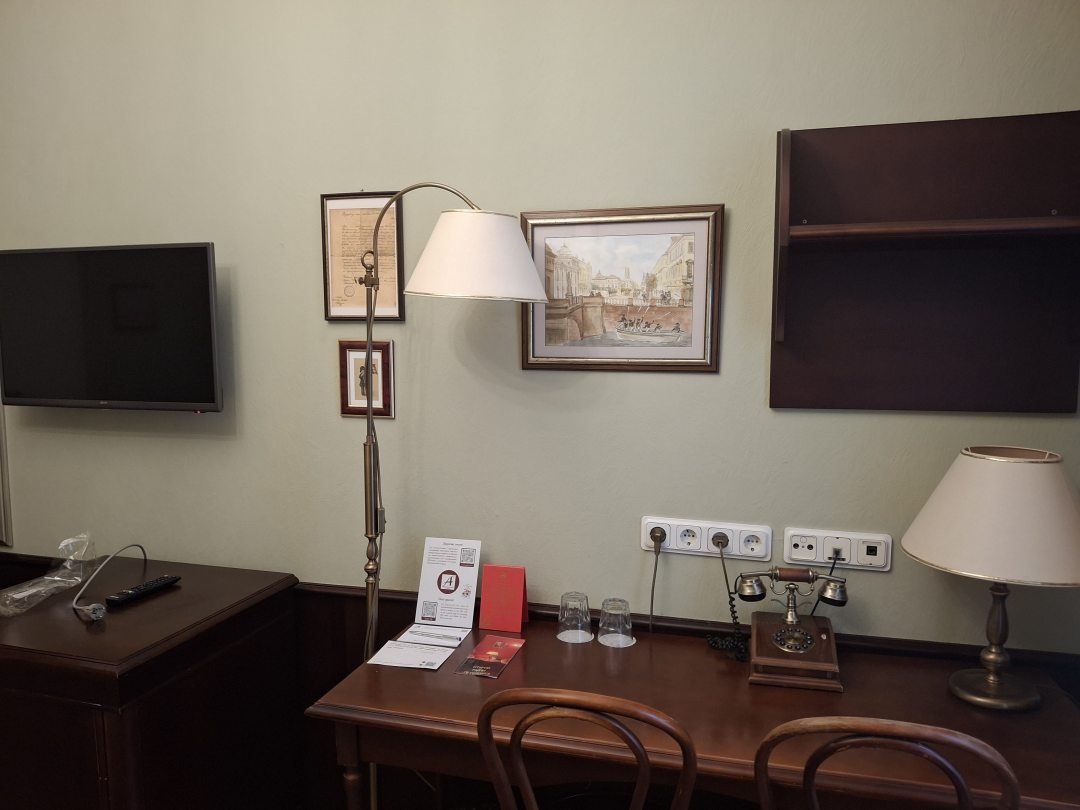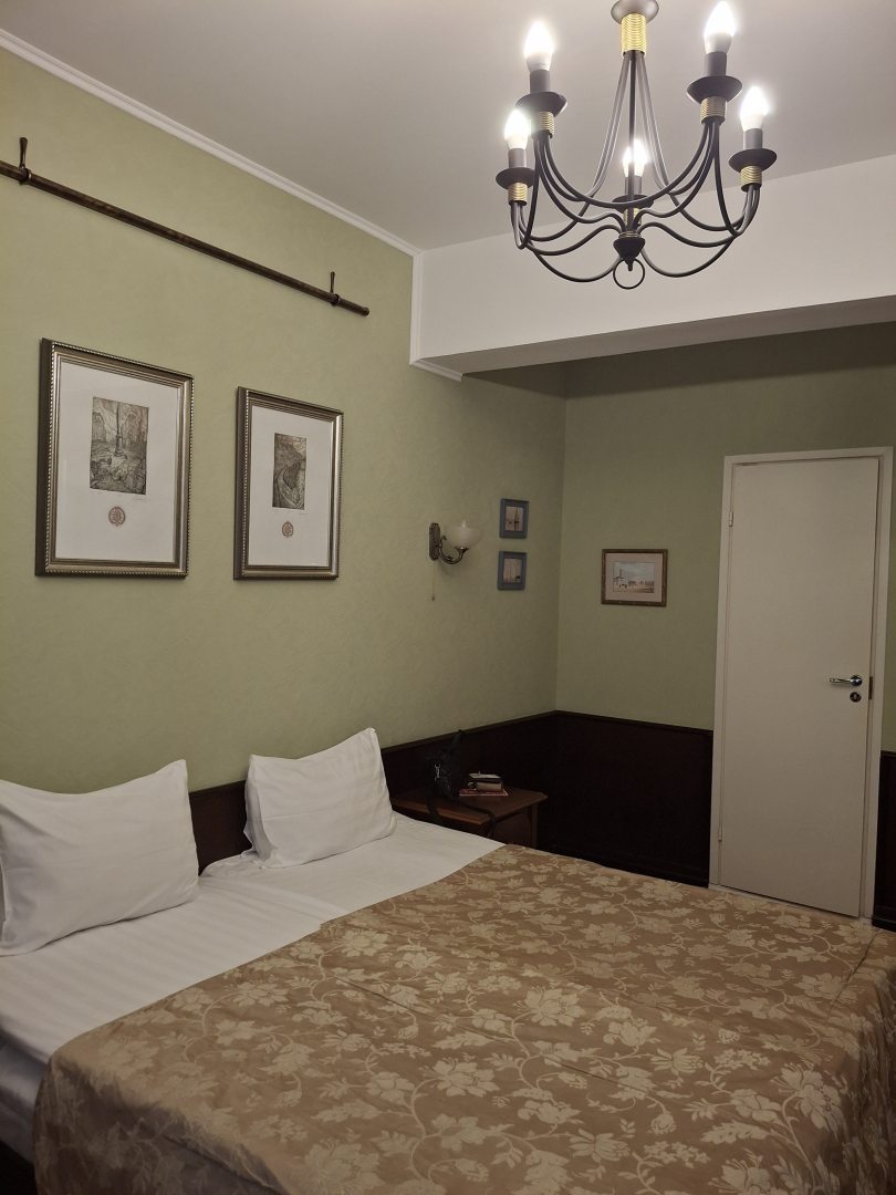 Чистый уютный номер, душ и туалет в номере. Белоснежное белье на кроватях. Очень доброжелательный персонал. Решали любые вопросы от вопросов про утюг, до как куда и на чем лучше добраться.Под окнами очень редкие машины и почти не видно людей на улицах, спали с открытым окном в тишине, и это была фантастика! Прогулялись по безлюдному каналу реки Пряжи. Вышли на Английскую набережную, а там уже есть,где разгуляться. Шведский завтрак был обильным и разнообразным. Отдохнули отлично.
