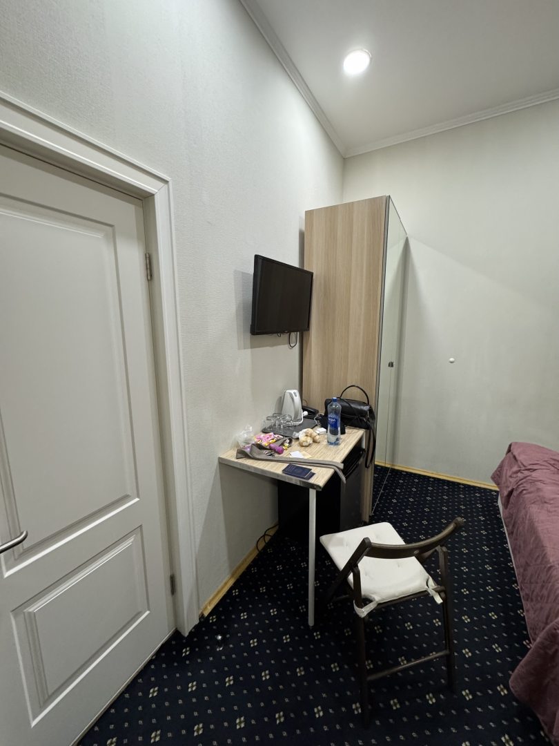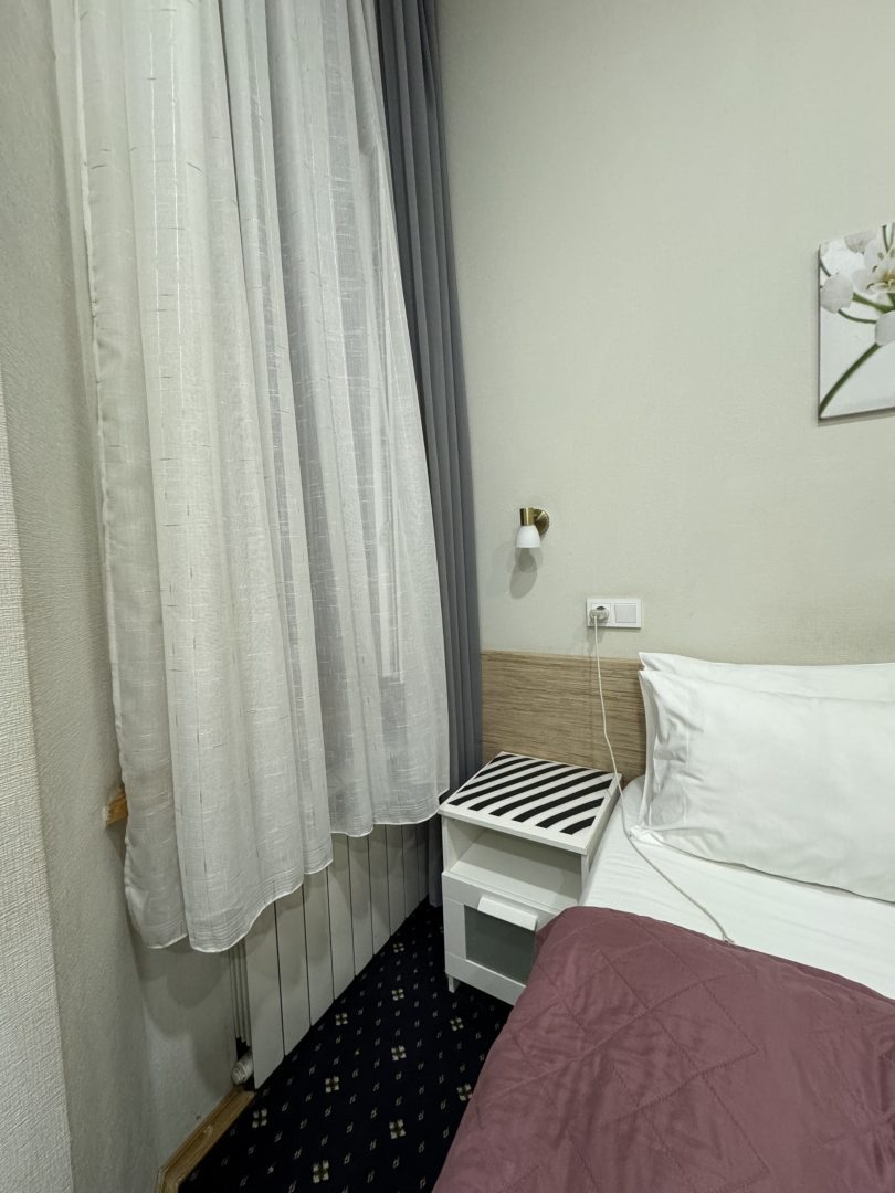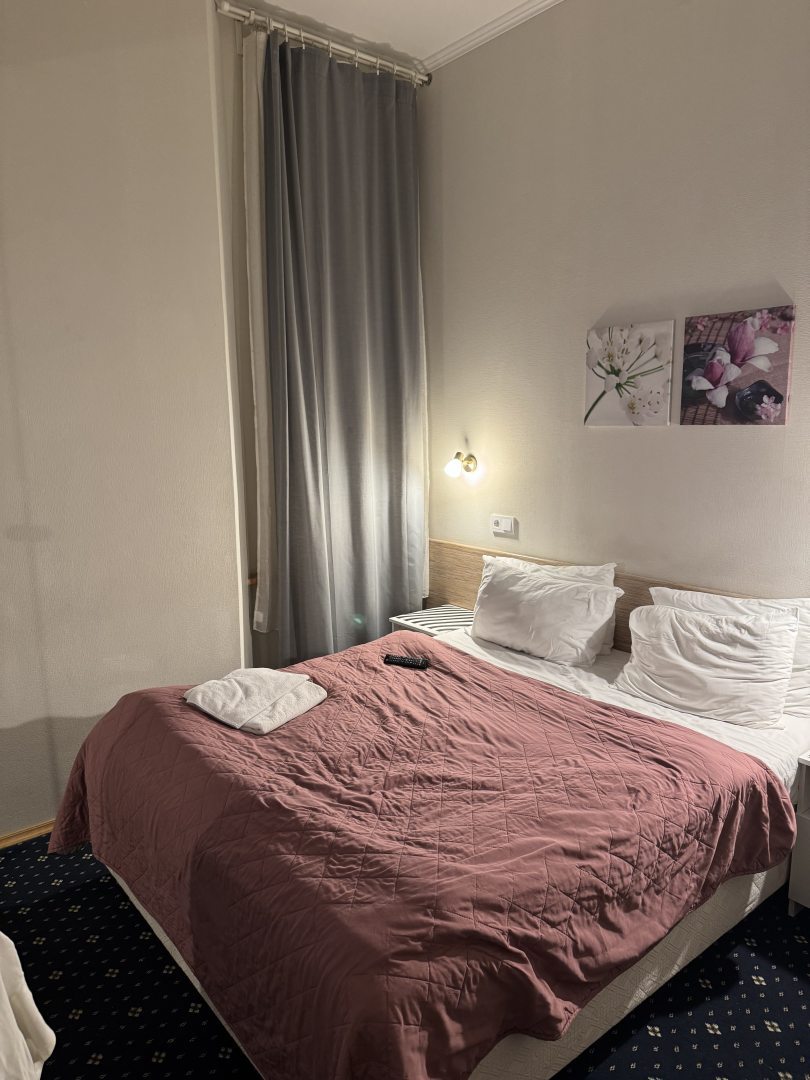Искал отель в центральном районе в шаговой доступности к Невскому и метро Садовая+. В 2х мест. стандарт - чайник, мини холодильник, масло. обогреватель, вентилятор, фен, тв, 2бокала, 2 кружки, тапки, душевая химия. Каждые сутки смена полотенец, уборка мусора. Общее - лифт, микроволновка, салфетки, одноразовая посуда, кулер, раковина, камера хранения(можно оставить вещи до и после проживания). Напротив в домах - кофейня+выпечка, кб, столовые-кафе, внизу 01.07.25 открыт продуктовый Дикси. Тихий район. Номера с окнами на улицу(которые видел точно) 205,206,209-214,301-305. Бывают и с окнами в колодец. Мне повезло в первом варианте. Мне в общем понравилось