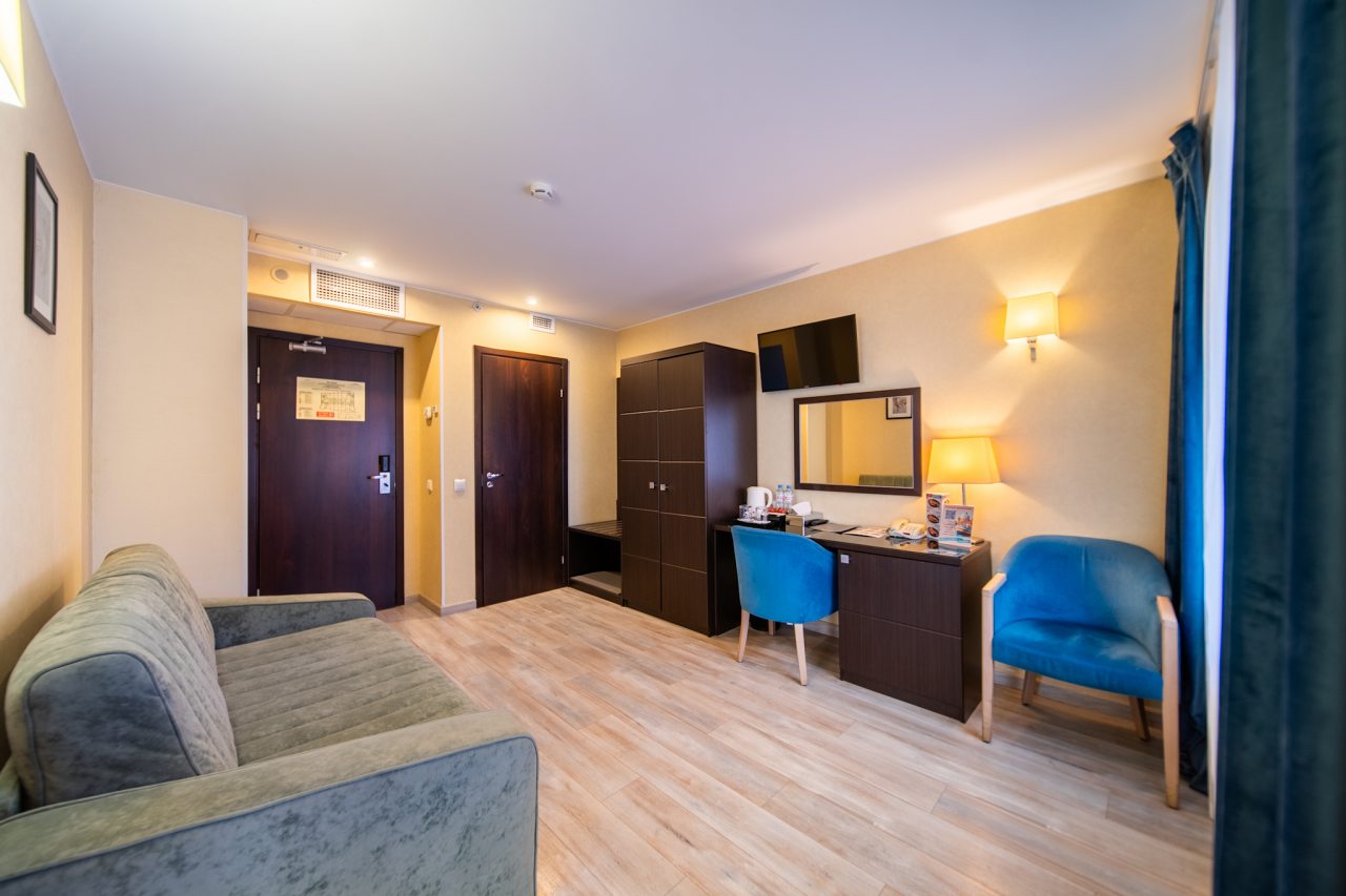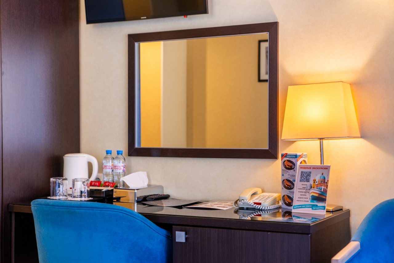 Первый раз в Питере и в этом отеле соответственно вдвоем с женой(посоветовали ее родственники), но есть с чем сравнить и у нас и в загранке(по крайней мере с Калининградом, нашим югом и уж тем более с Египтом, Турцией, Грецией и т.д. где бывали много раз). Легко и быстро добраться до отеля на любом транспорте и метро от вокзалов без такси от отеля 30-40 мин пешком-Аврора, еще 10-15 мин Петропавловская крепость и далее Эрмитаж тихий район и хорошая звукоизоляция стен(ночью при открытых окнах тишина!) вокруг отеля много магазинов и кафе на любой вкус завтрак все включено- без изысков, но на любой вкус взрослым и детям, все очень вкусно и сытно(каждый найдет что ему нужно) и даже при полном заселения отеля всего из меню хватает всем и всегда отличная уборка номеров вежливый и отзывчивый персонал(отдельное спасибо администратору на рецепшен Александре, которая нас заселила, все терпеливо объяснила по отелю и куда как добраться по городу!!!!)номер что заказывали получили и заселились в 14.00 без проблем, до заселения вещи оставили в камере хранения на рецепшен ключ-карту от номера дали нам обоим(в загранке дают только одну на номер)отсутствие чайников в номере компенсируеться современными кулерами на всех этажах- с чаем(кофе и вообще с горячей водой и кипятком на перекус проблем нет)перебоев с водой и с сантехникой никаких в ванной жидкое мыло для рук, для тела и шампунь. Отелем довольны на все 100(вообще всем!)вся техника-холодильник, телек и т.д. работает без проблем соотношение цена-качество обалденное, за бугром отель был бы не трешкой а четверкой и цена была бы больше в разы! Когда поедим в Питер в следующий раз( а поедим обязательно, очень понравилось все-и город и отель!!!) то обязательно с остановкой только в Балтии!!! Всем этот отель рекомендуем от всей души!!!