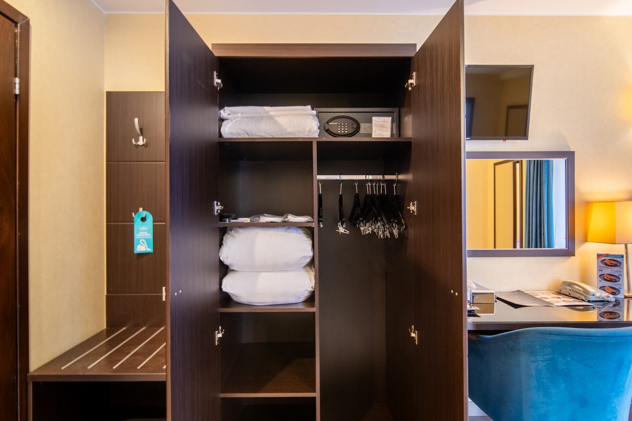 Внутри всё аккуратно, интерьер современный и спокойный. В номере уютно, освещение мягкое, не утомляет глаза. Кровать удобная, после прогулок по городу отдых полноценный. Завтрак подают вовремя, выбор радует. Уборка аккуратная, ничего лишнего не трогают.