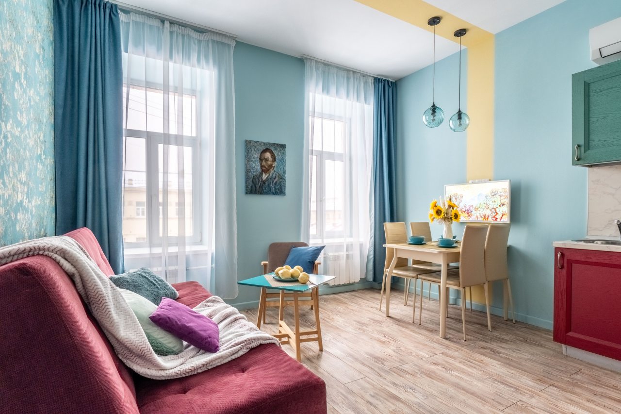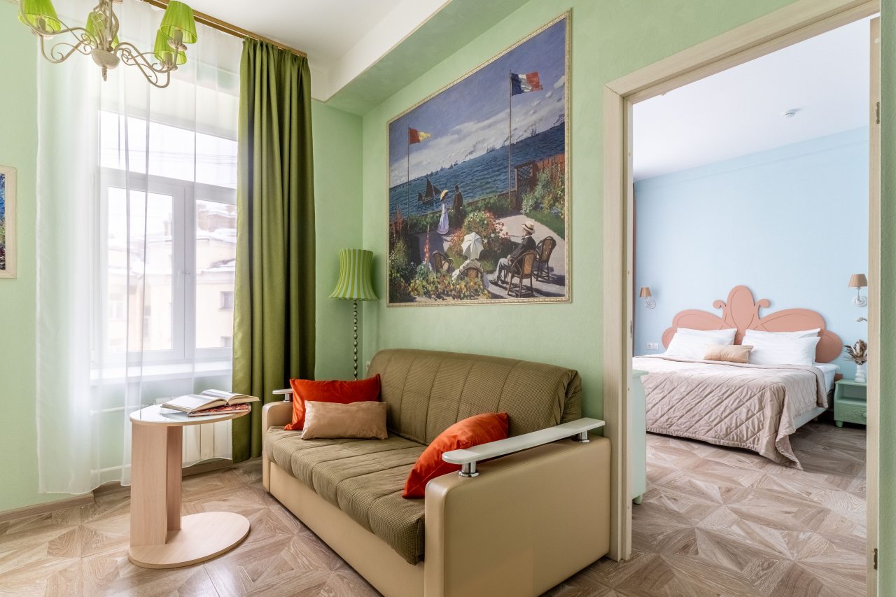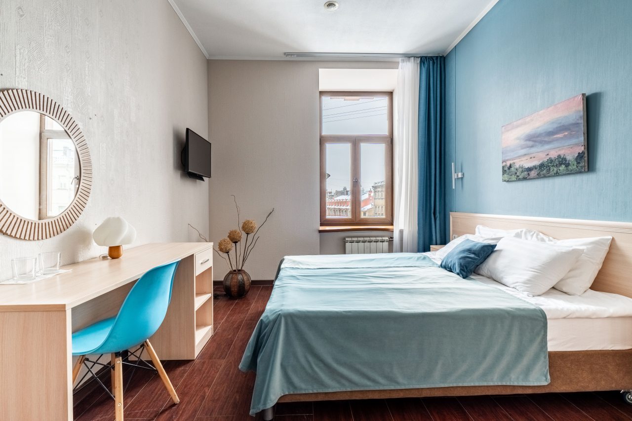 Удачное расположение, Невский проспект в 5 мин хотьбы. Номер чистый, видно, что не так давно сделали ремонт. Мебель новая. В номере с кухней есть все необходимое.